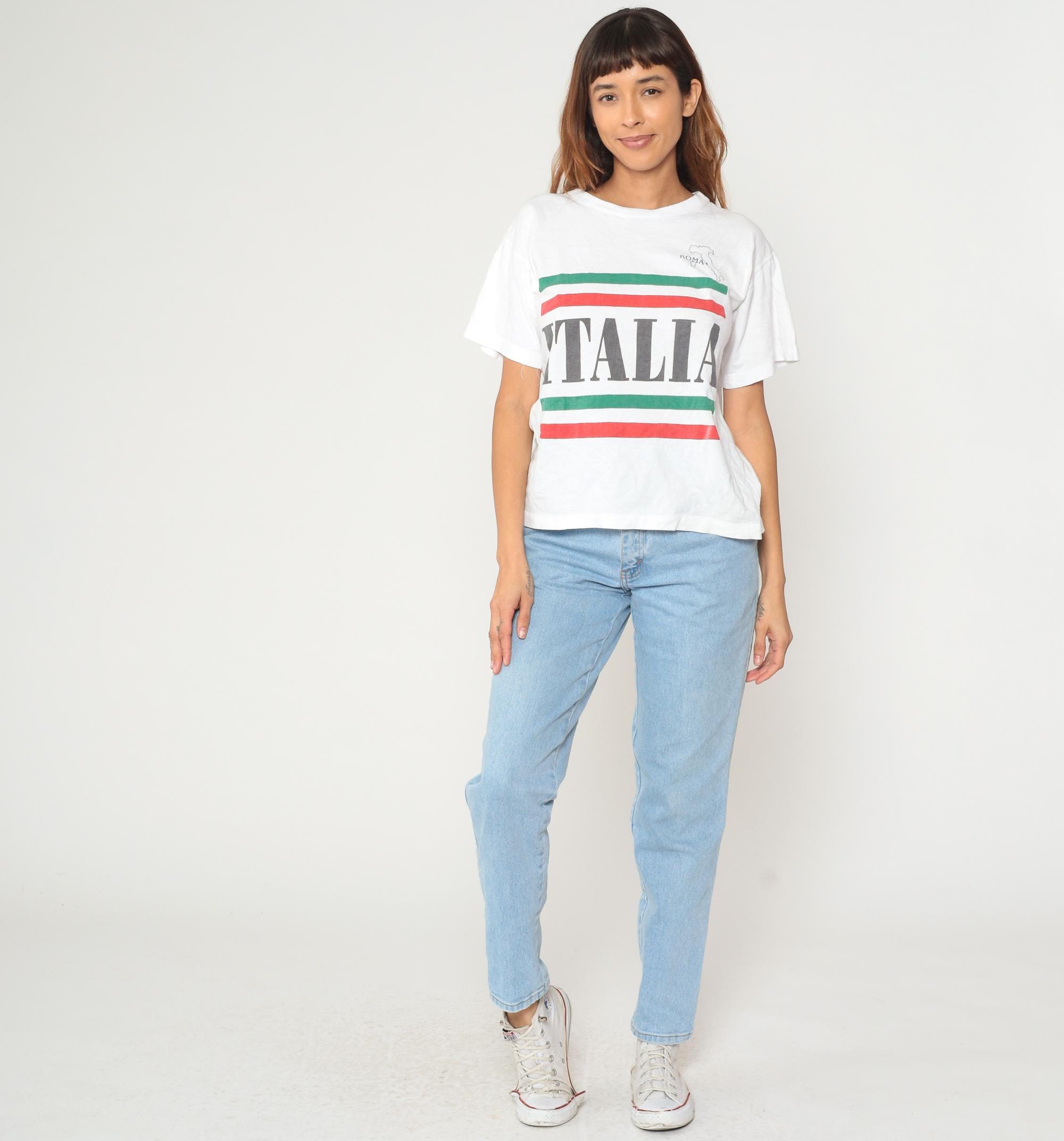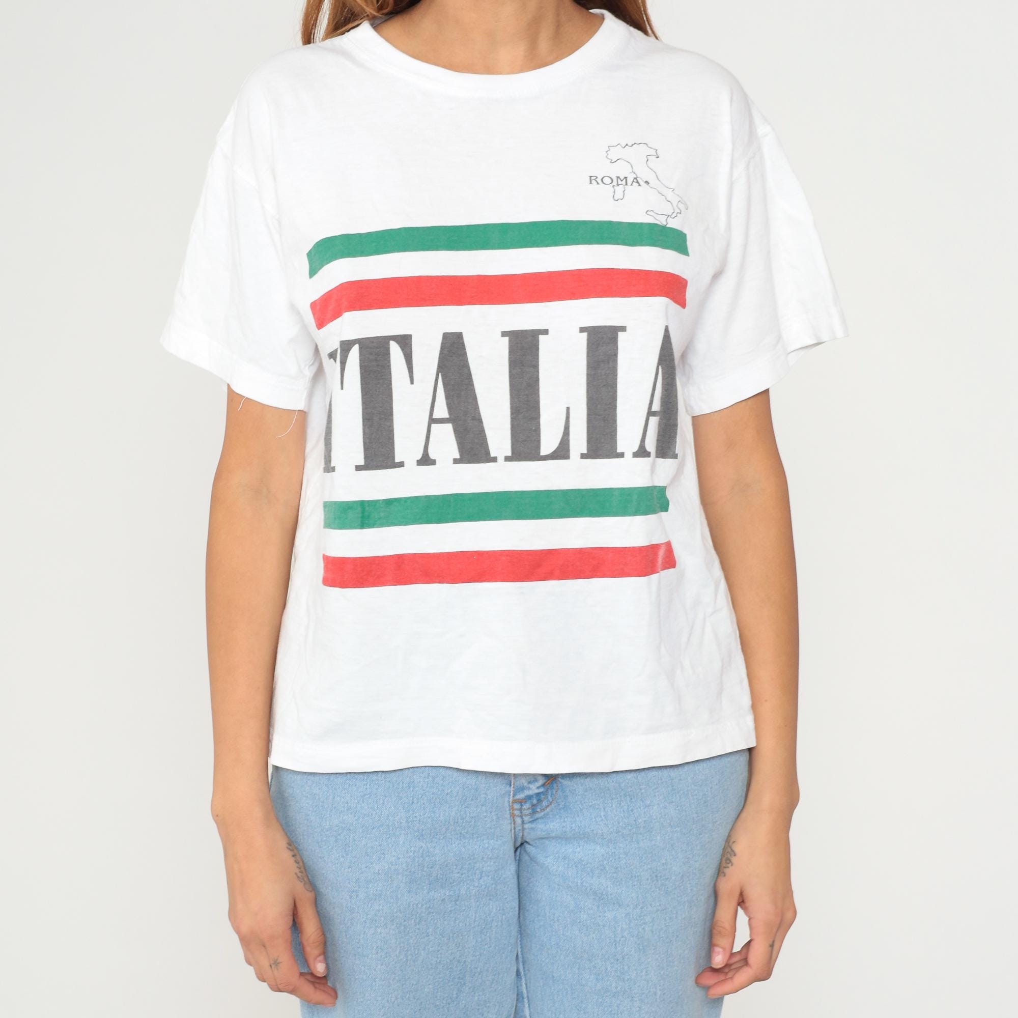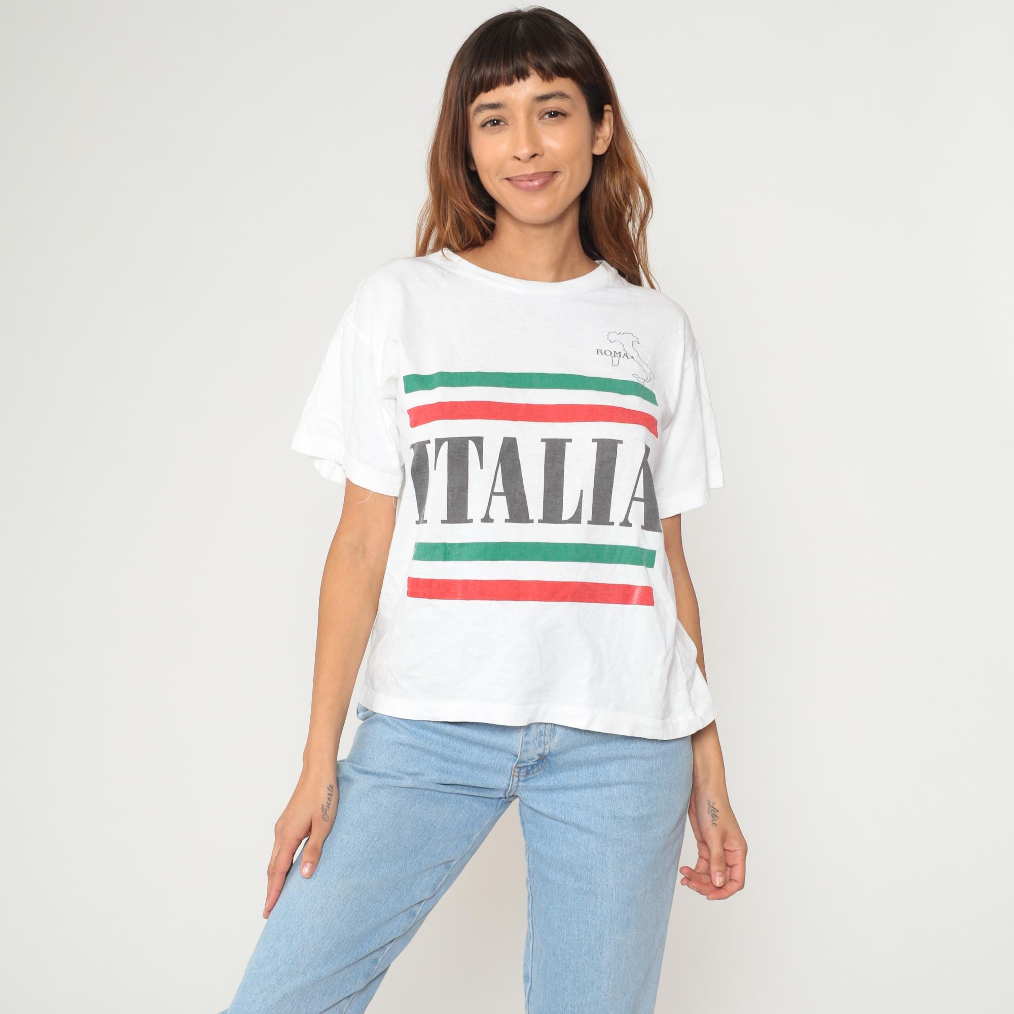 Vintage 90s t shirt in white with Roma Italia and an Italian flag and country print on front.