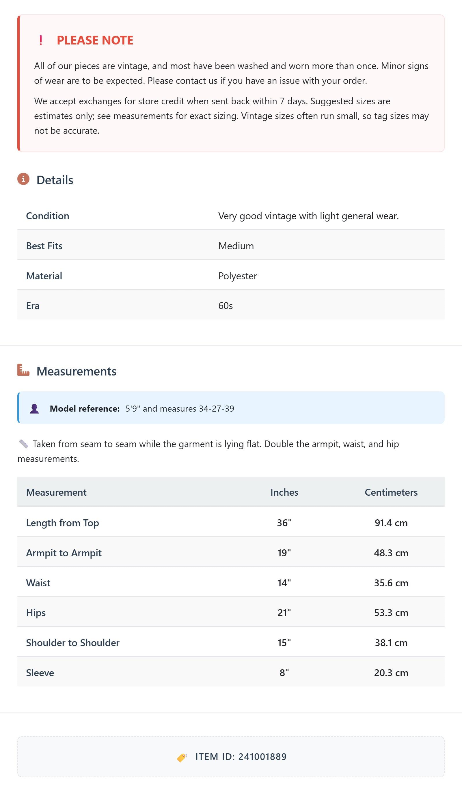 Suggested sizes are estimates only; see measurements for exact sizing. Vintage sizes often run small, so tag sizes may not be accurate.