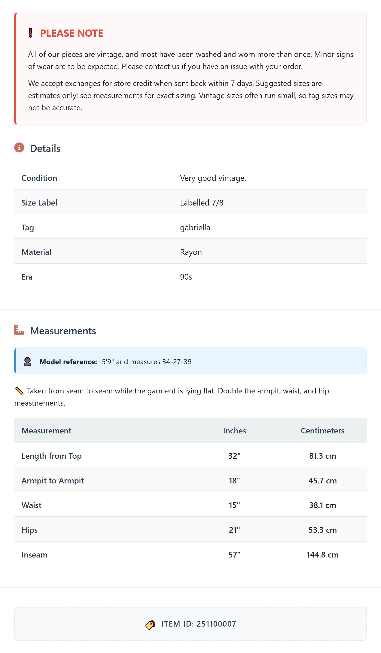 Suggested sizes are estimates only; see measurements for exact sizing. Vintage sizes often run small, so tag sizes may not be accurate.