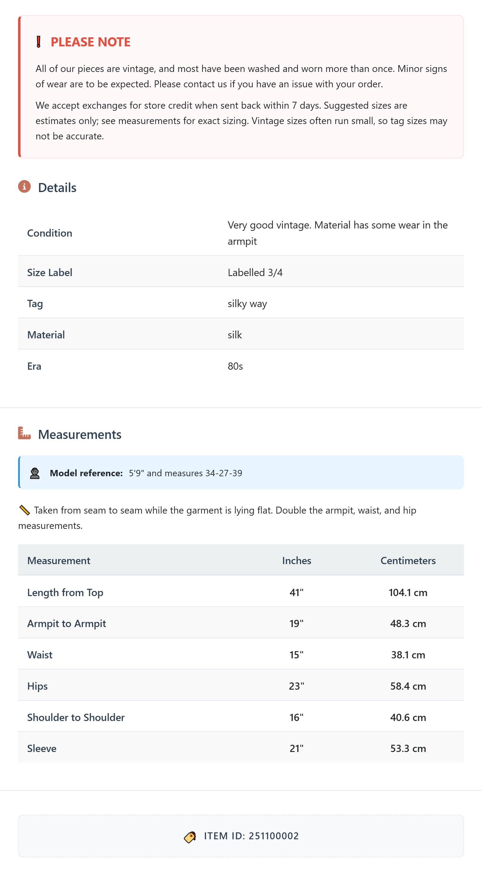 Suggested sizes are estimates only; see measurements for exact sizing. Vintage sizes often run small, so tag sizes may not be accurate.