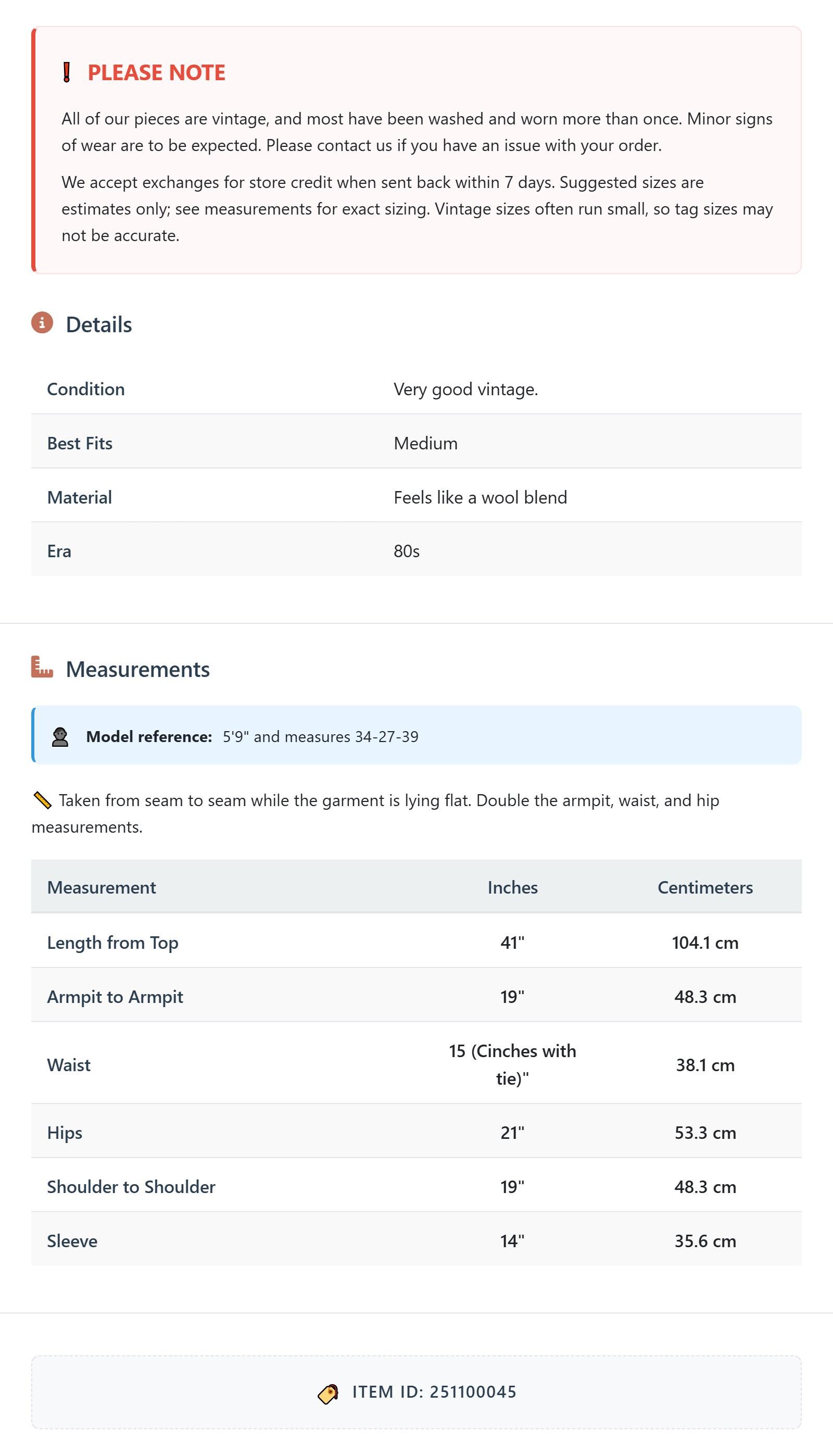 Suggested sizes are estimates only; see measurements for exact sizing. Vintage sizes often run small, so tag sizes may not be accurate.