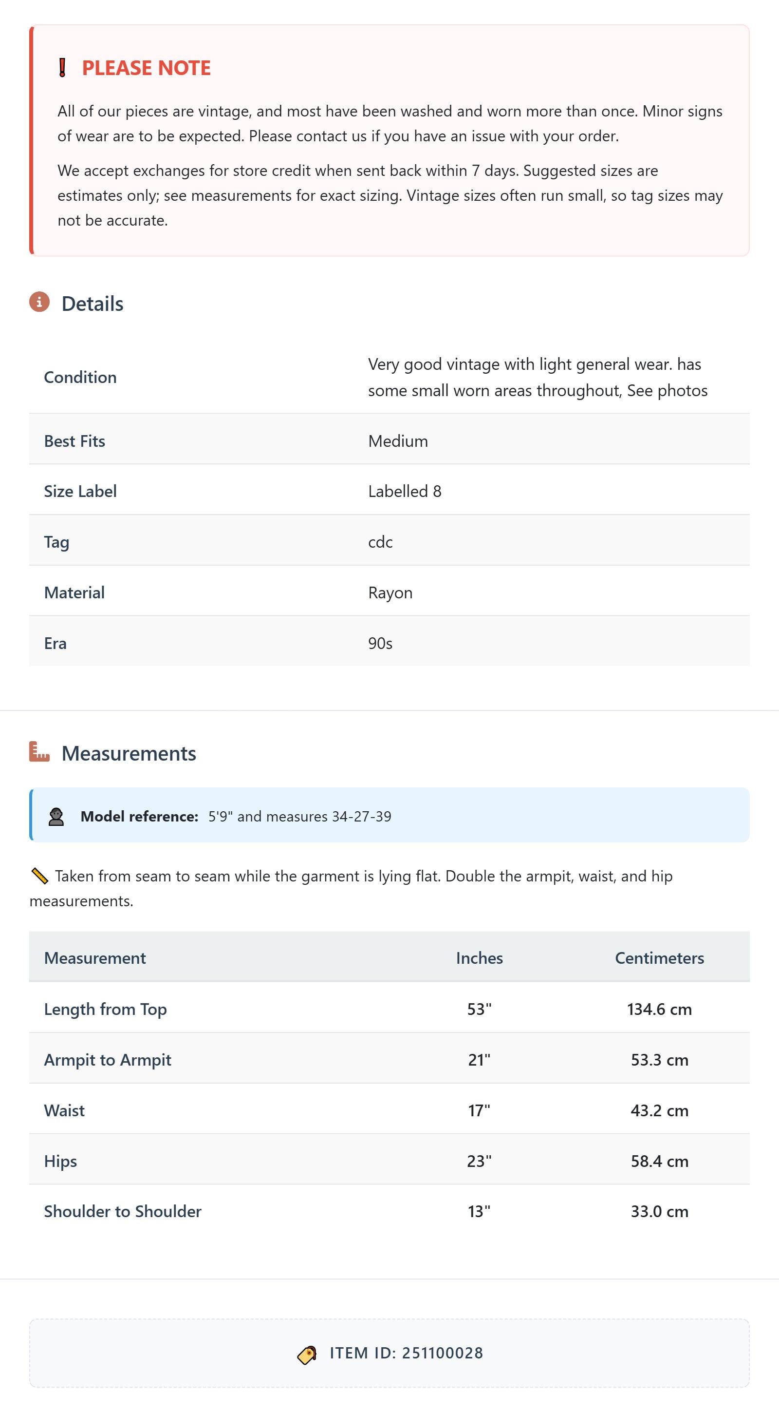 Suggested sizes are estimates only; see measurements for exact sizing. Vintage sizes often run small, so tag sizes may not be accurate.