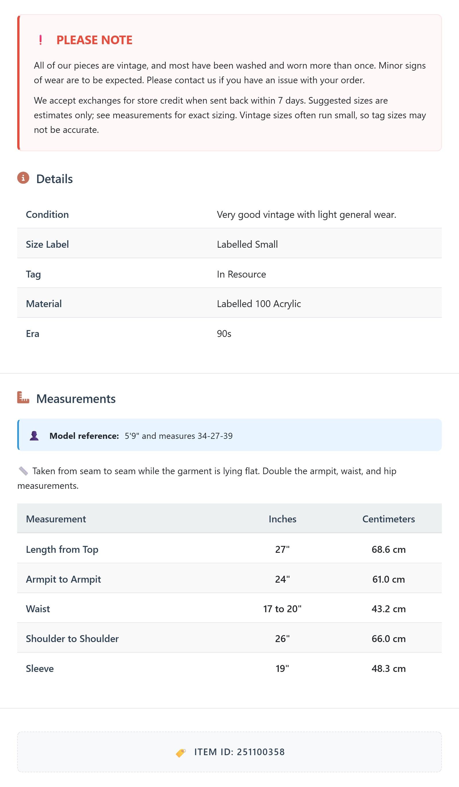 Suggested sizes are estimates only; see measurements for exact sizing. Vintage sizes often run small, so tag sizes may not be accurate.