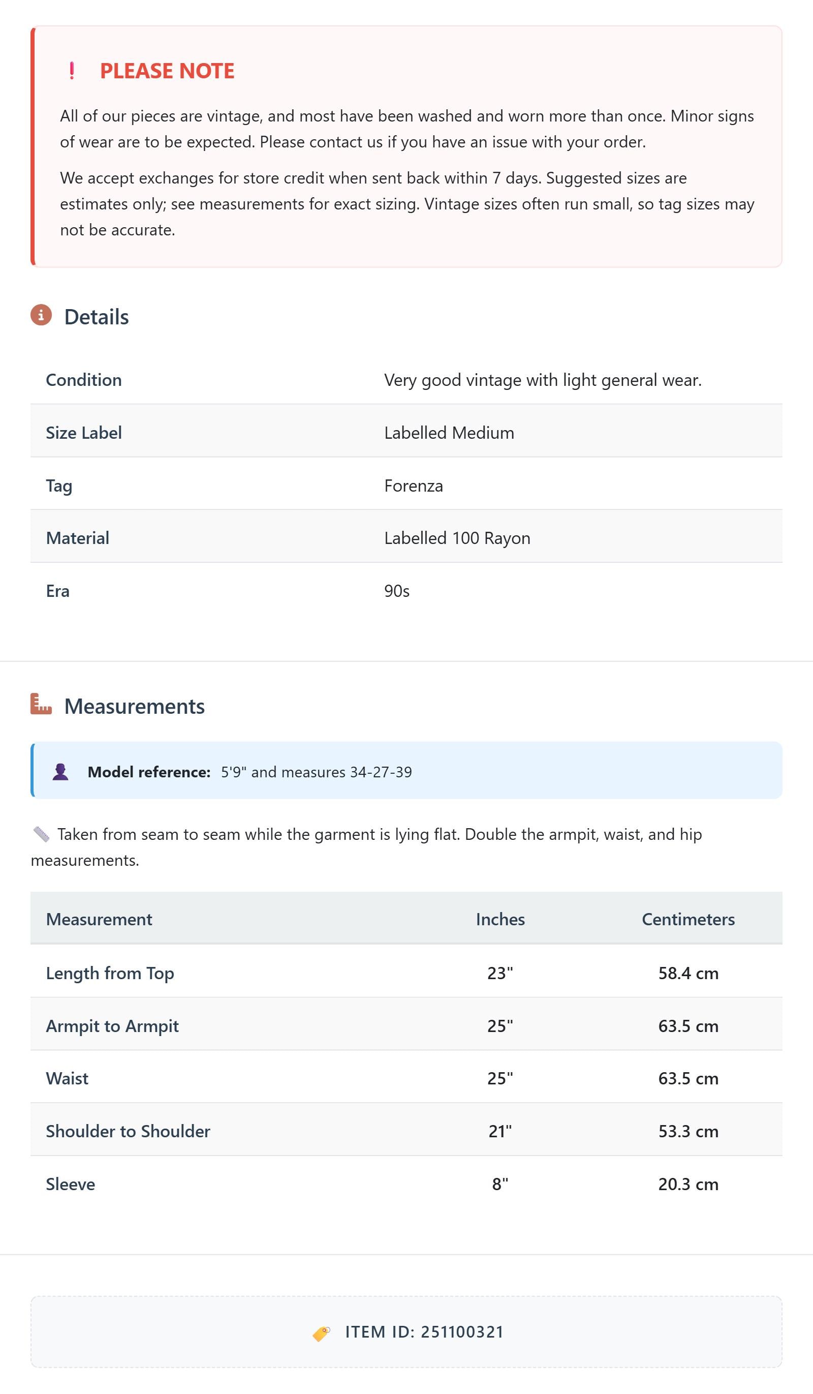 Suggested sizes are estimates only; see measurements for exact sizing. Vintage sizes often run small, so tag sizes may not be accurate.