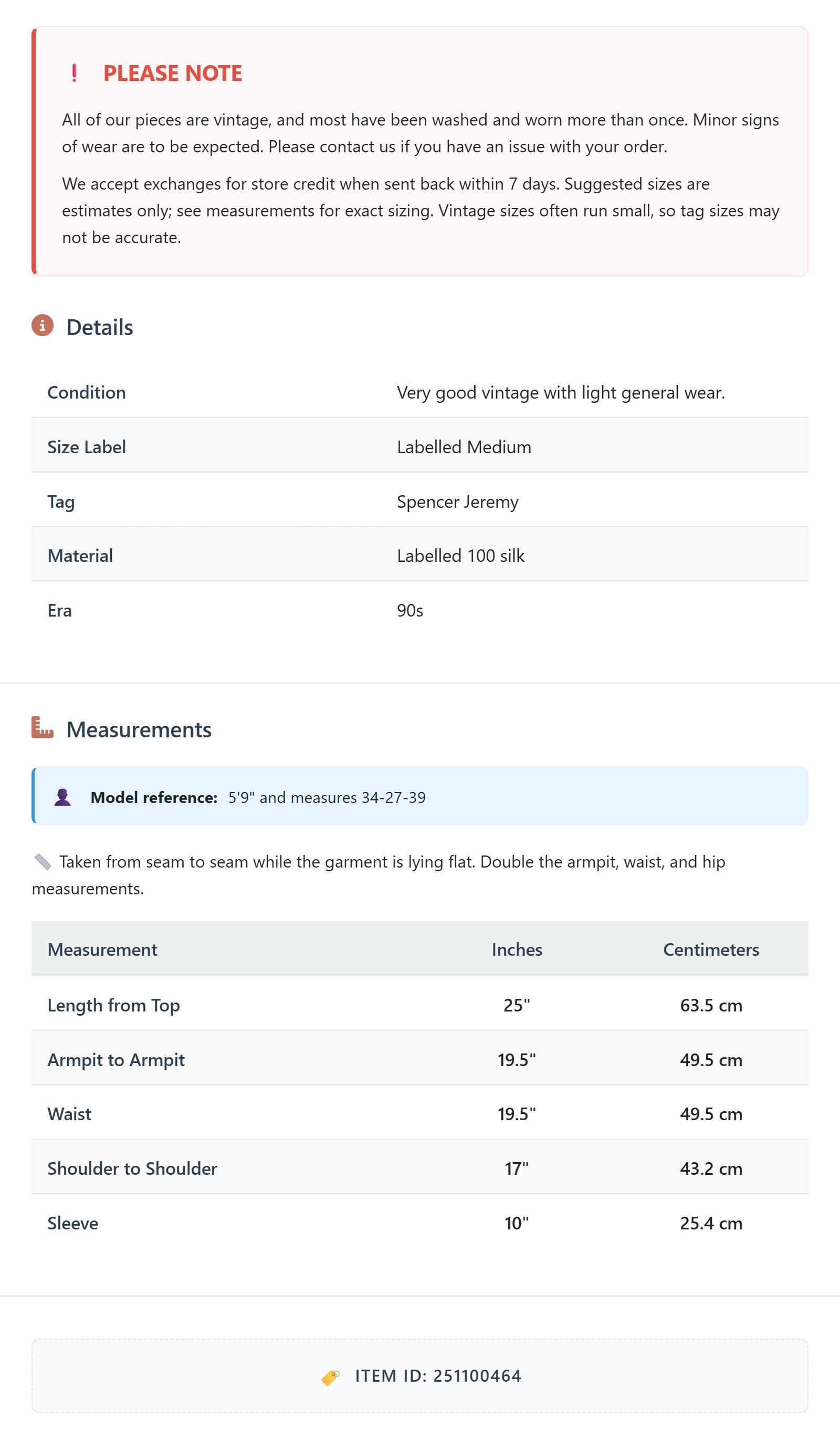 Suggested sizes are estimates only; see measurements for exact sizing. Vintage sizes often run small, so tag sizes may not be accurate.