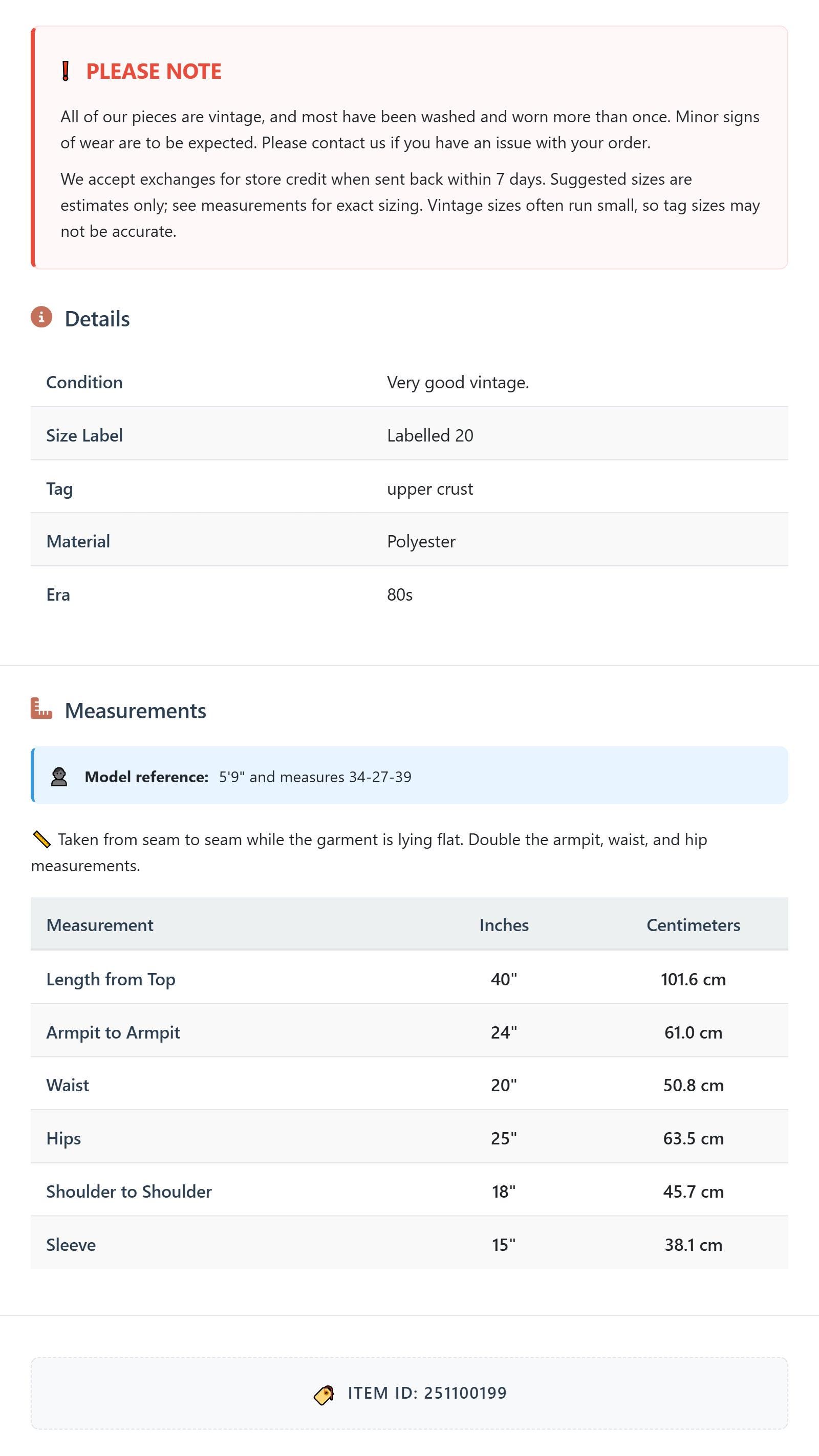 Suggested sizes are estimates only; see measurements for exact sizing. Vintage sizes often run small, so tag sizes may not be accurate.