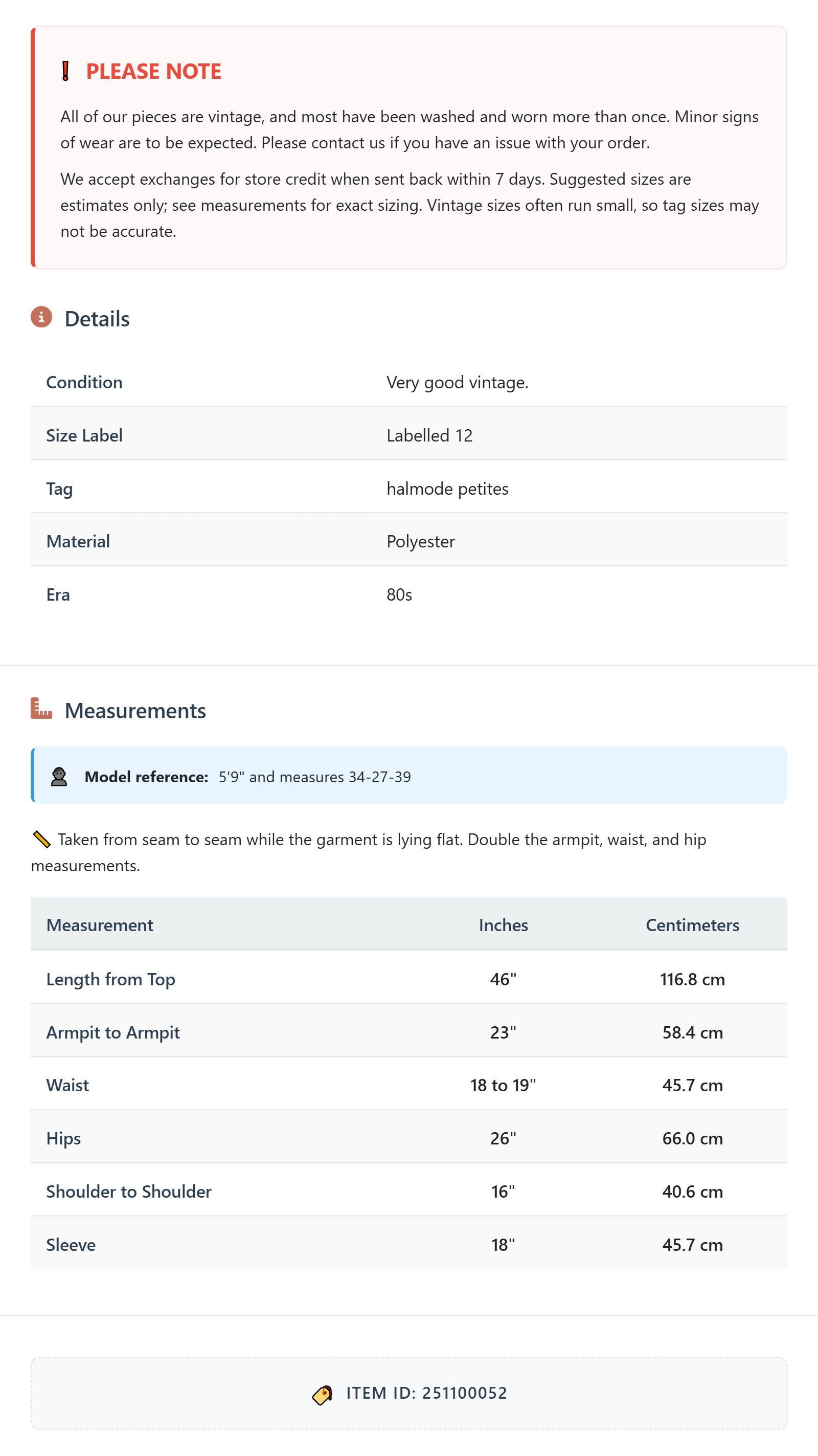 Suggested sizes are estimates only; see measurements for exact sizing. Vintage sizes often run small, so tag sizes may not be accurate.