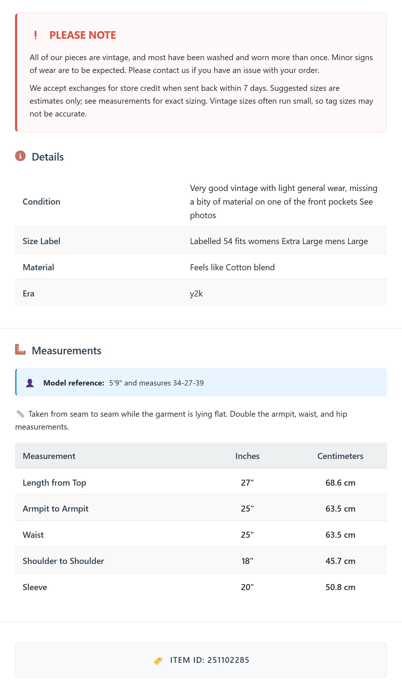Suggested sizes are estimates only; see measurements for exact sizing. Vintage sizes often run small, so tag sizes may not be accurate.