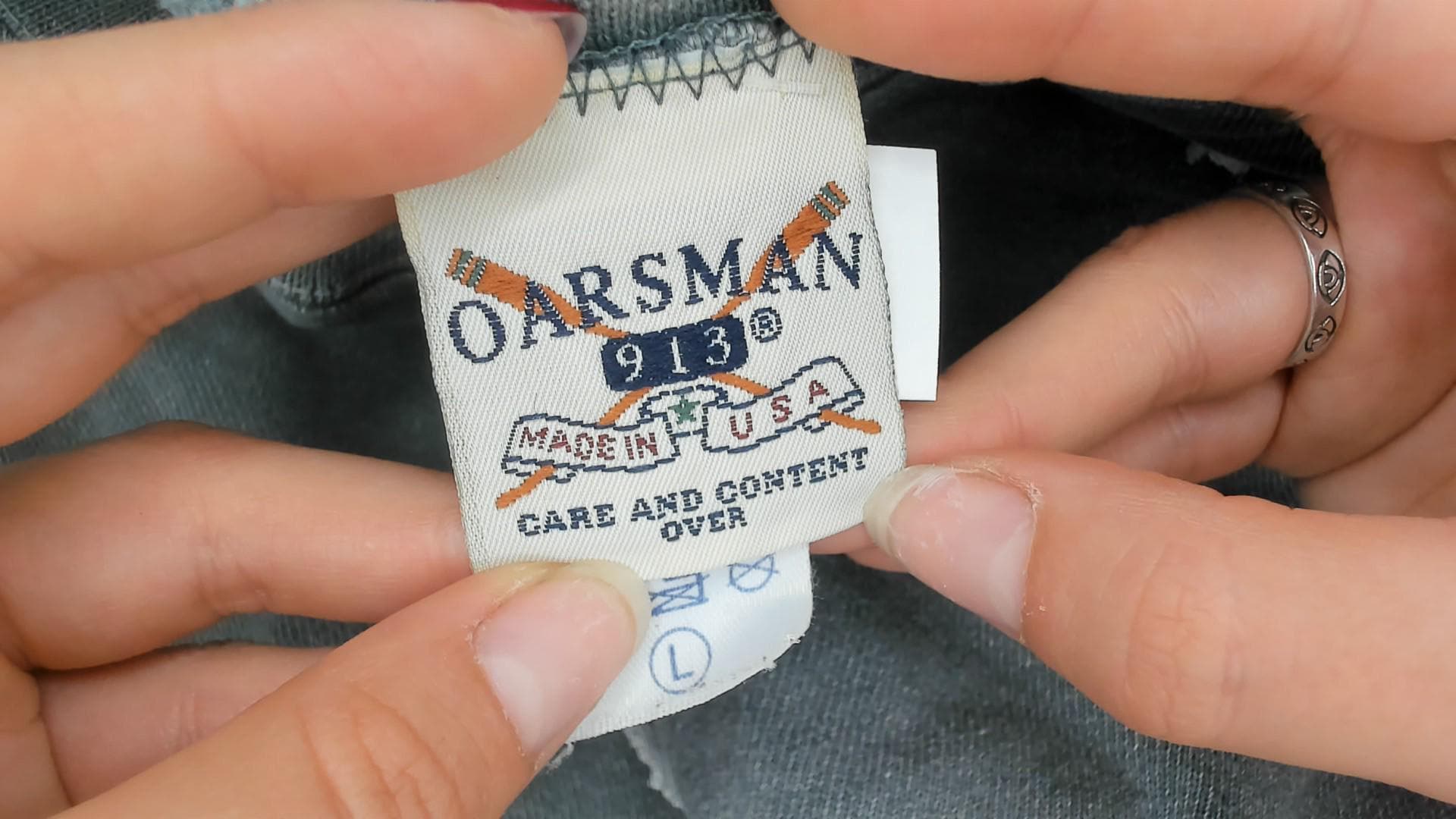 Condition: Distressed all throughout, has faint fading and bleach on the back, has white paint and a small hole See photos