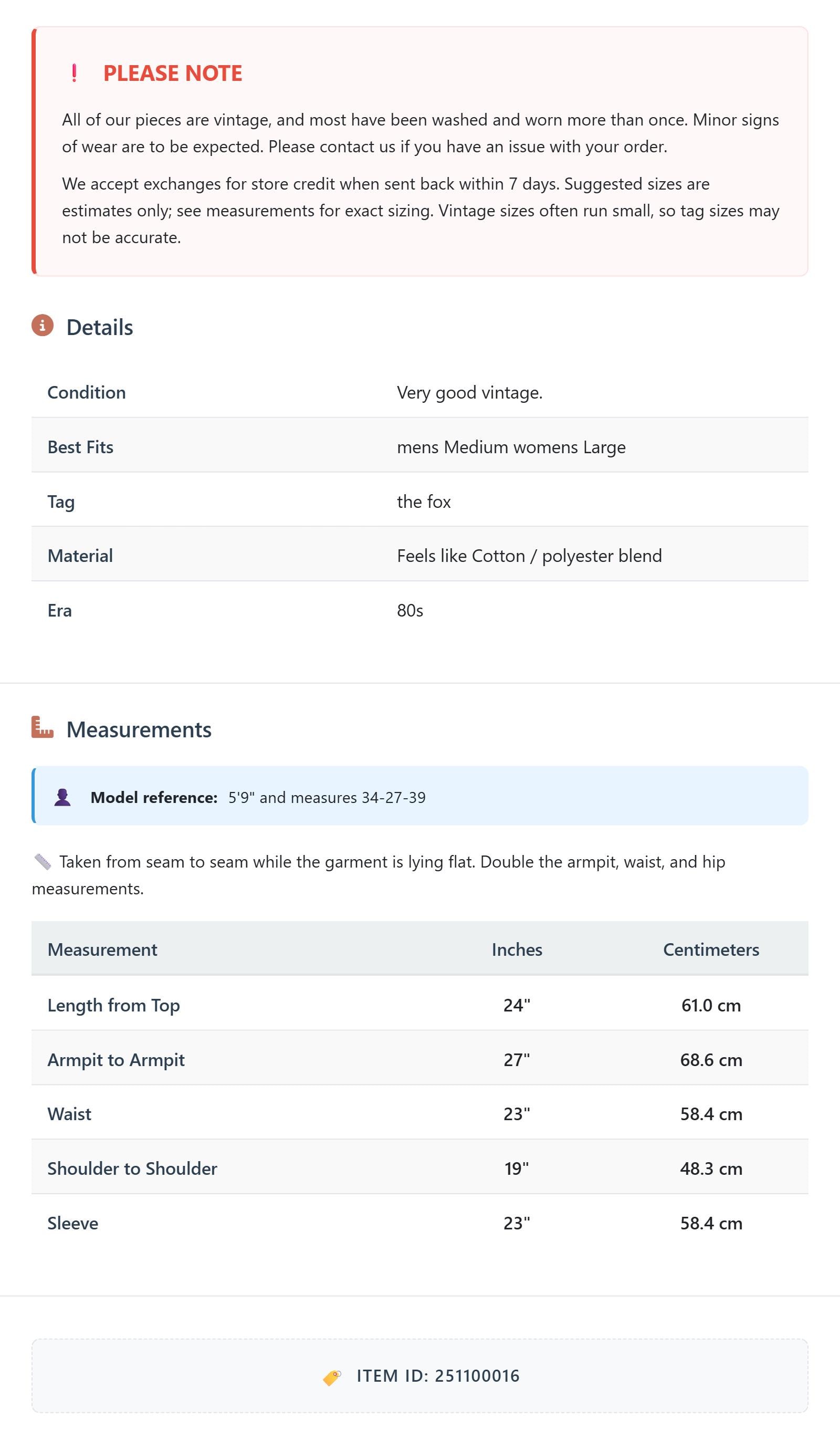 Suggested sizes are estimates only; see measurements for exact sizing. Vintage sizes often run small, so tag sizes may not be accurate.