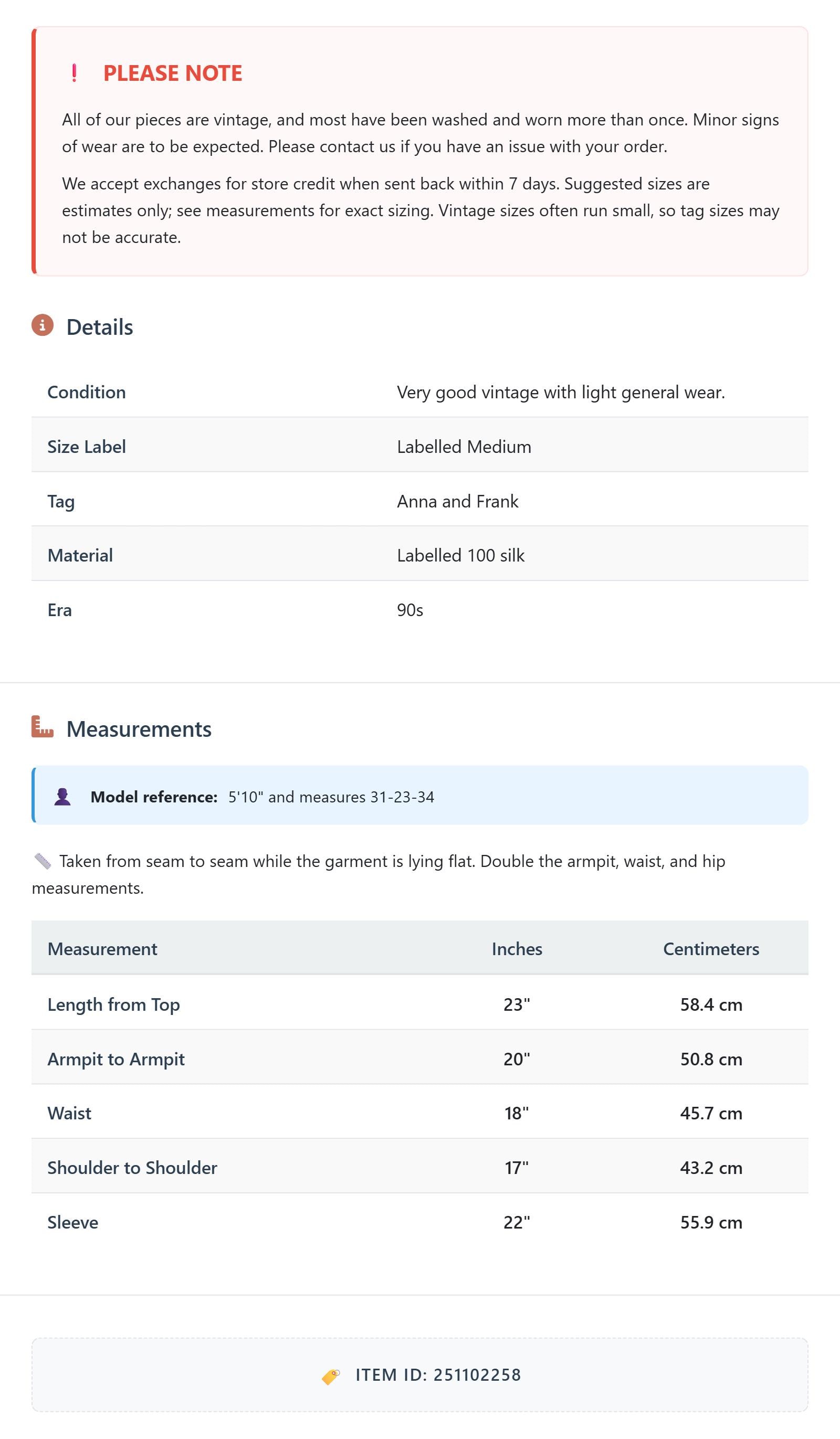 Suggested sizes are estimates only; see measurements for exact sizing. Vintage sizes often run small, so tag sizes may not be accurate.