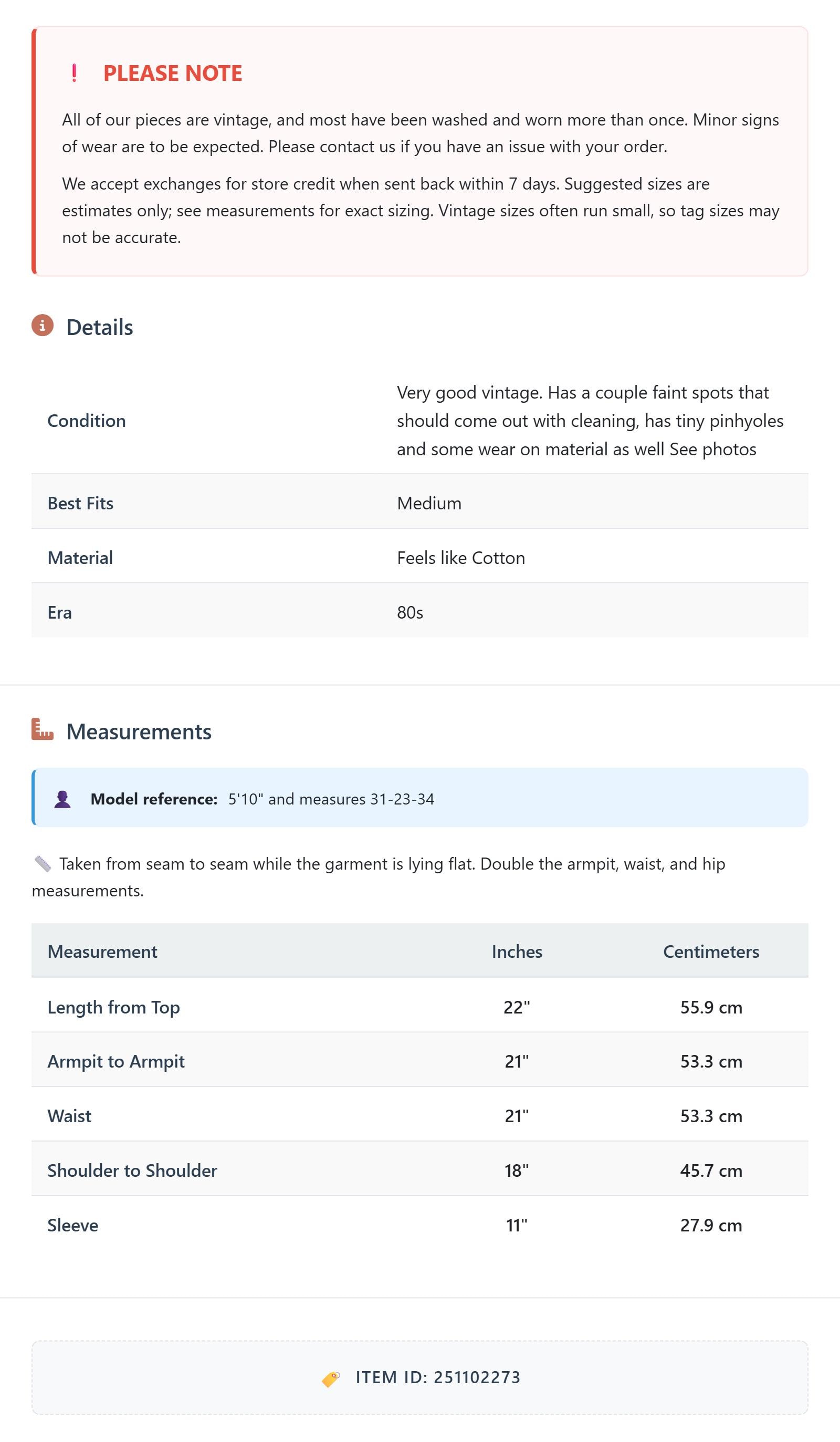 Suggested sizes are estimates only; see measurements for exact sizing. Vintage sizes often run small, so tag sizes may not be accurate.