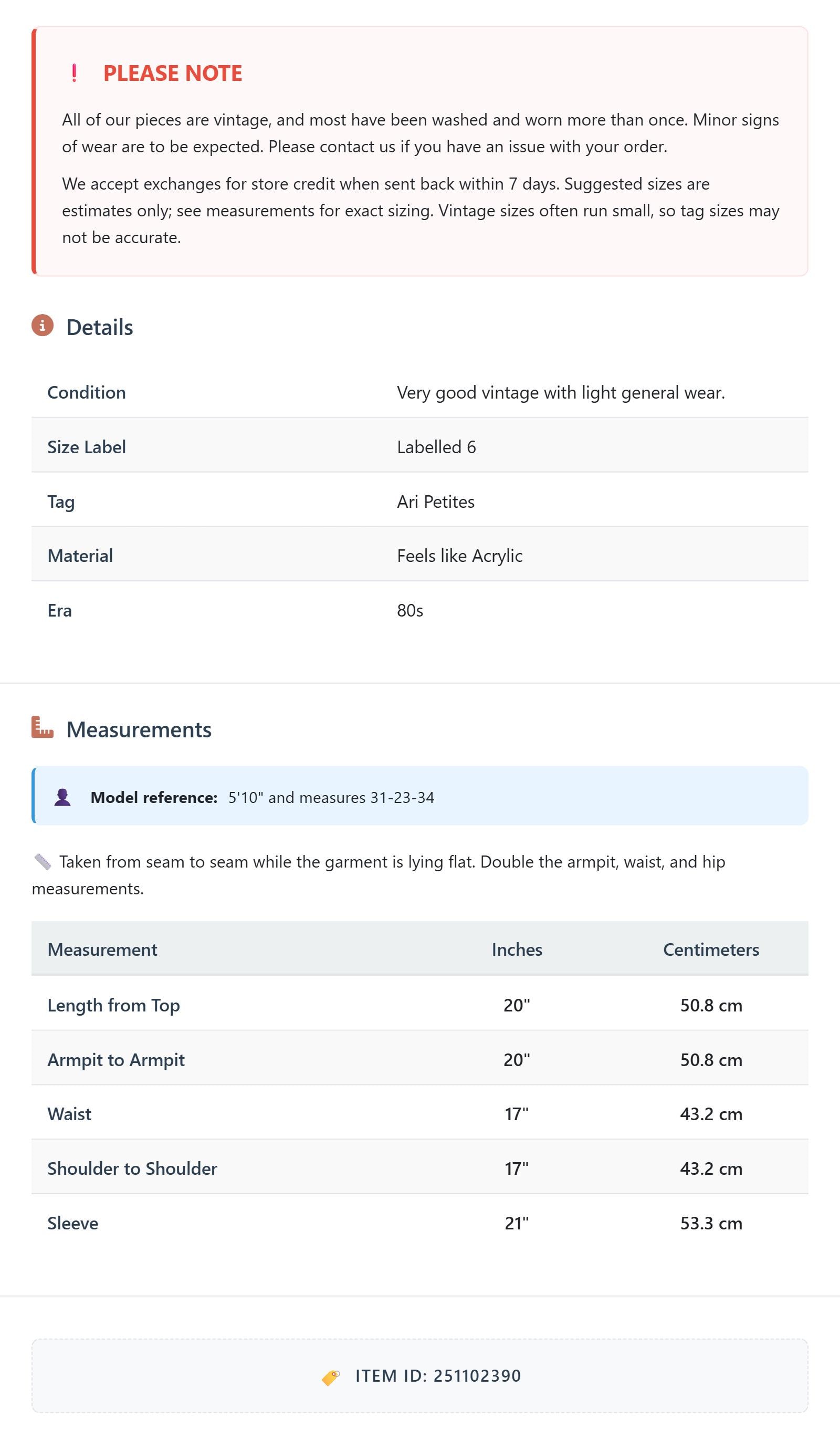 Suggested sizes are estimates only; see measurements for exact sizing. Vintage sizes often run small, so tag sizes may not be accurate.