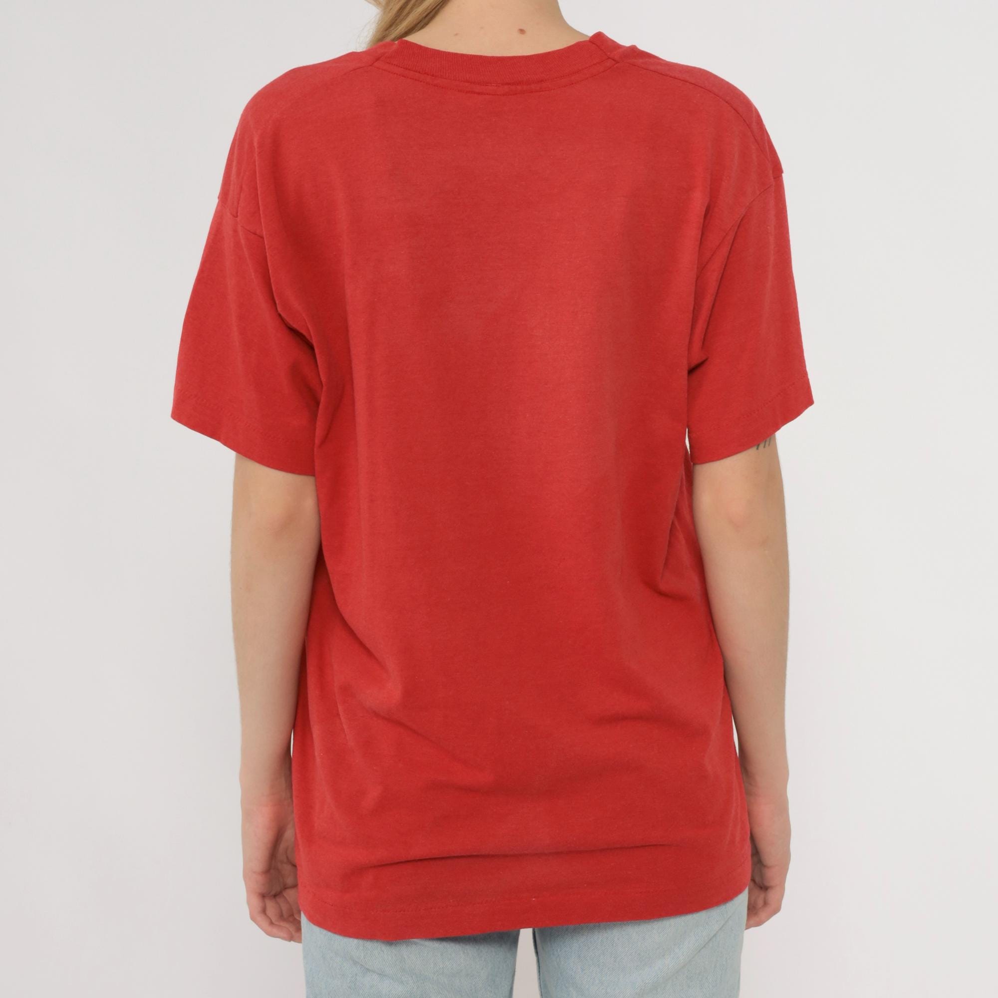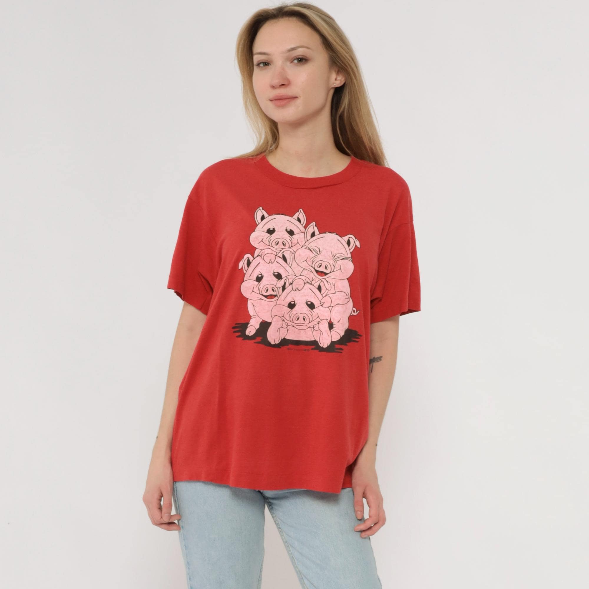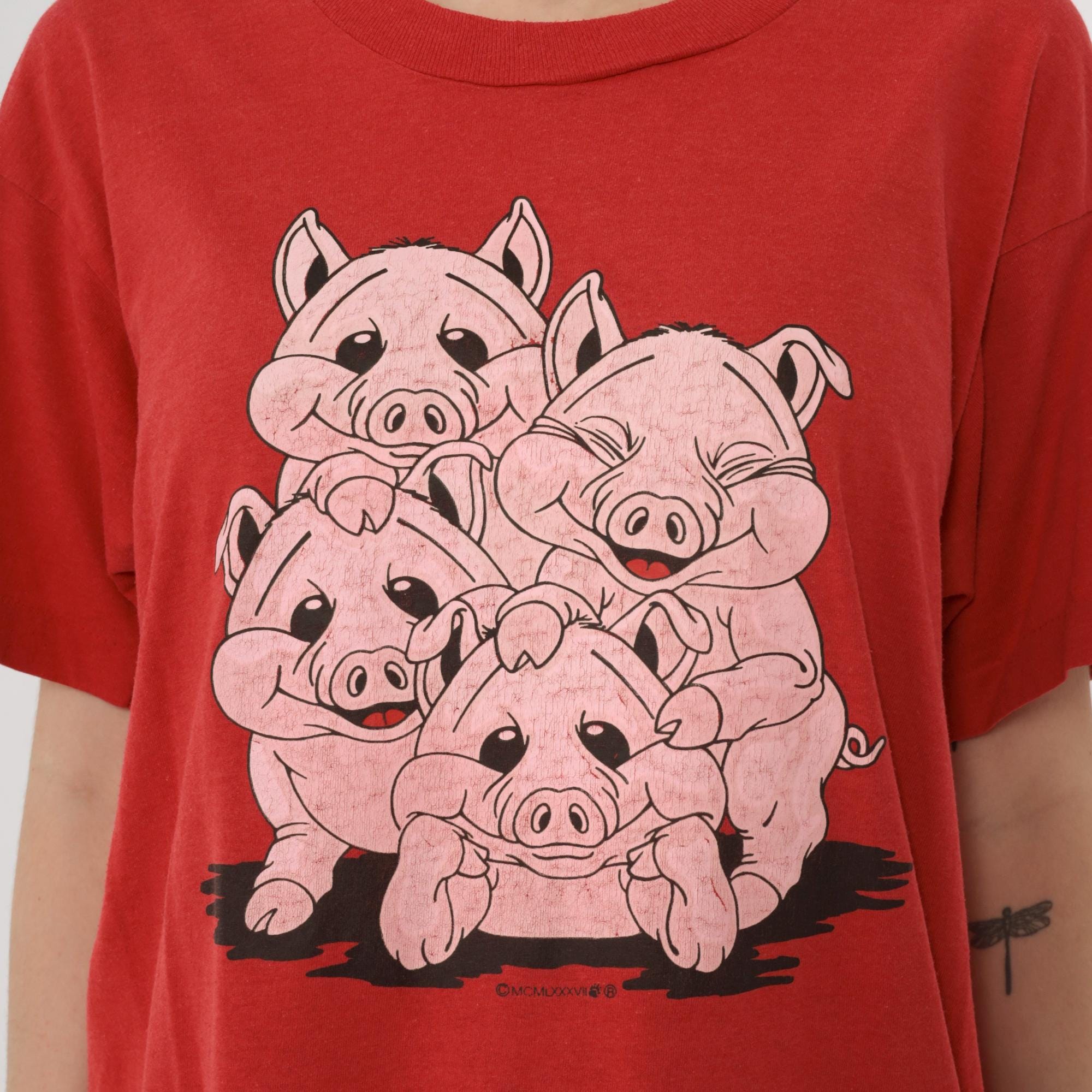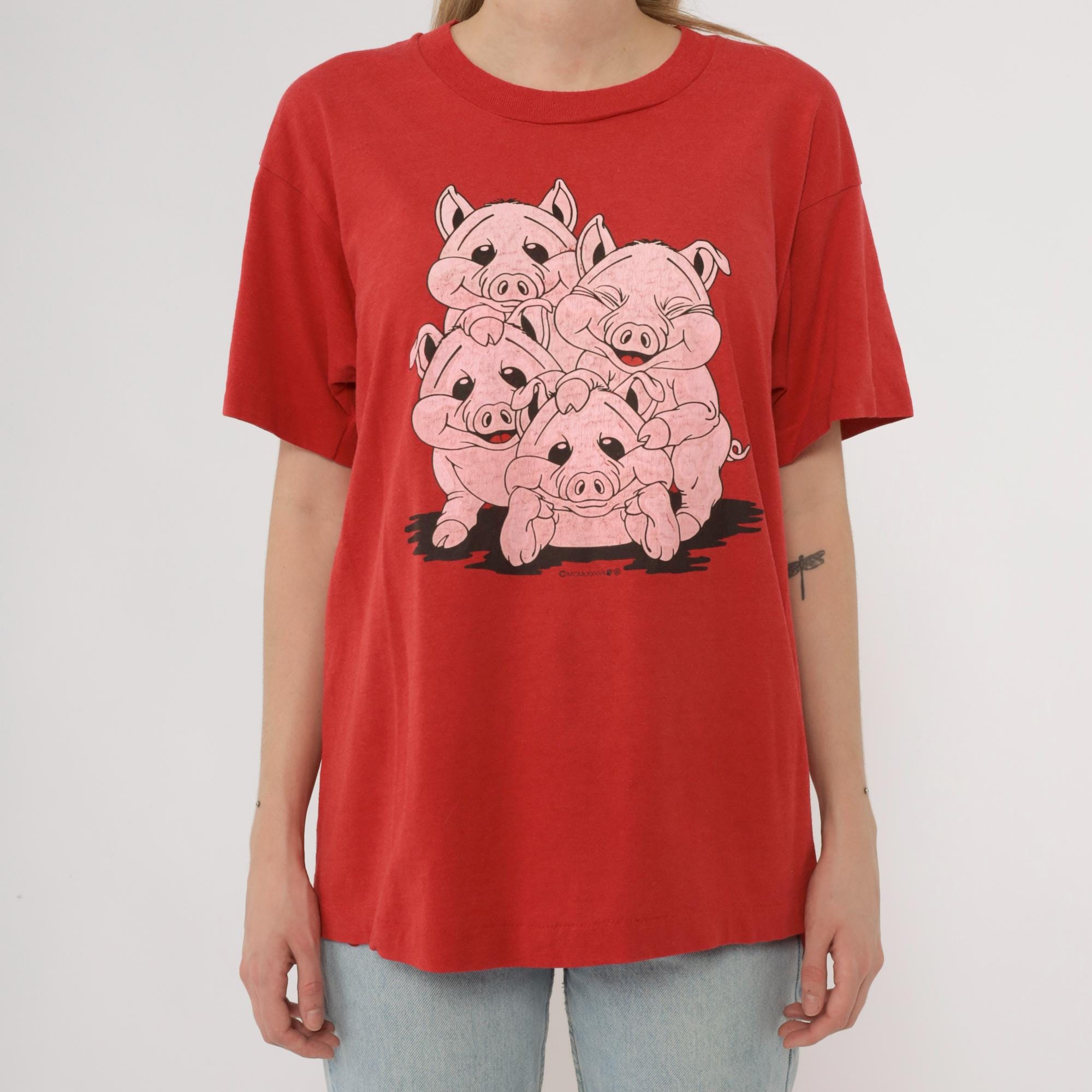 90s red graphic t-shirt from Screen Stars with cartoon pig print across the front. Crew neckline, short sleeves, relaxed fit.