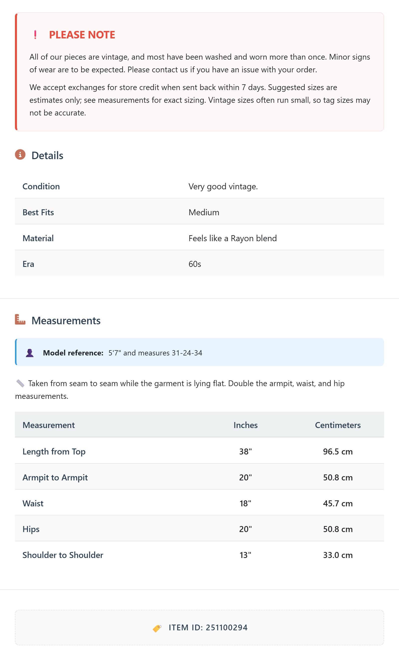 Suggested sizes are estimates only; see measurements for exact sizing. Vintage sizes often run small, so tag sizes may not be accurate.