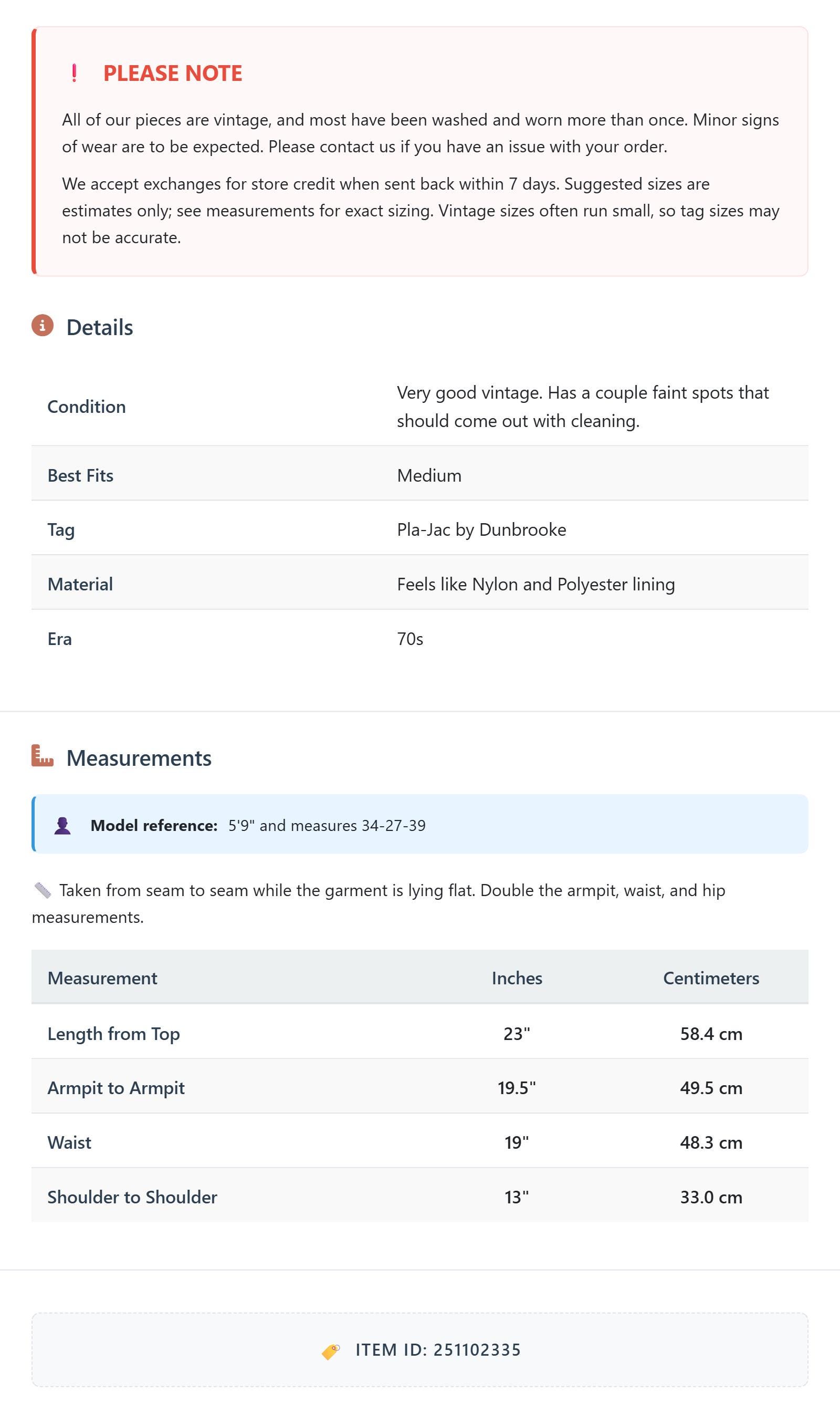 Suggested sizes are estimates only; see measurements for exact sizing. Vintage sizes often run small, so tag sizes may not be accurate.