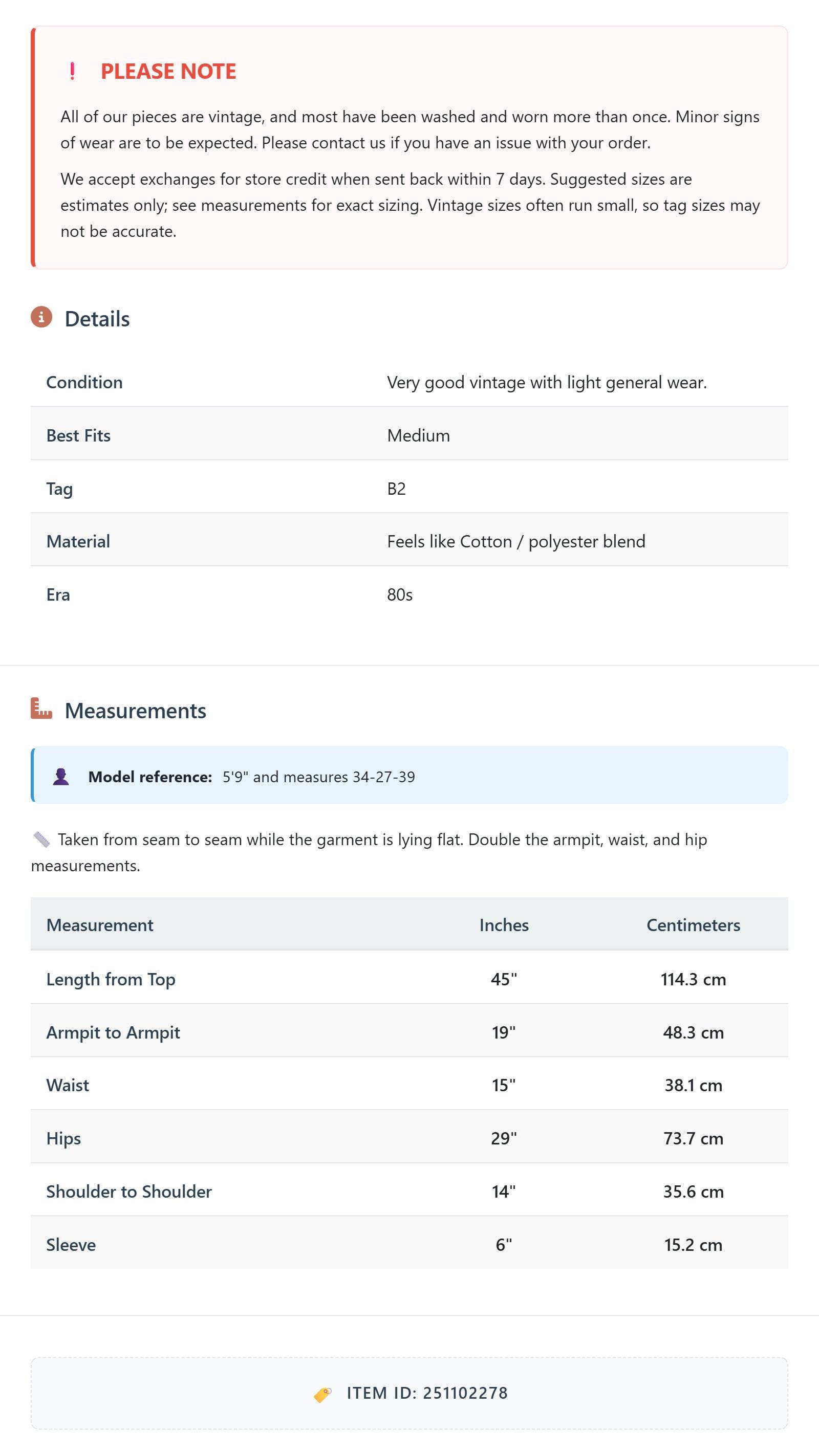 Suggested sizes are estimates only; see measurements for exact sizing. Vintage sizes often run small, so tag sizes may not be accurate.