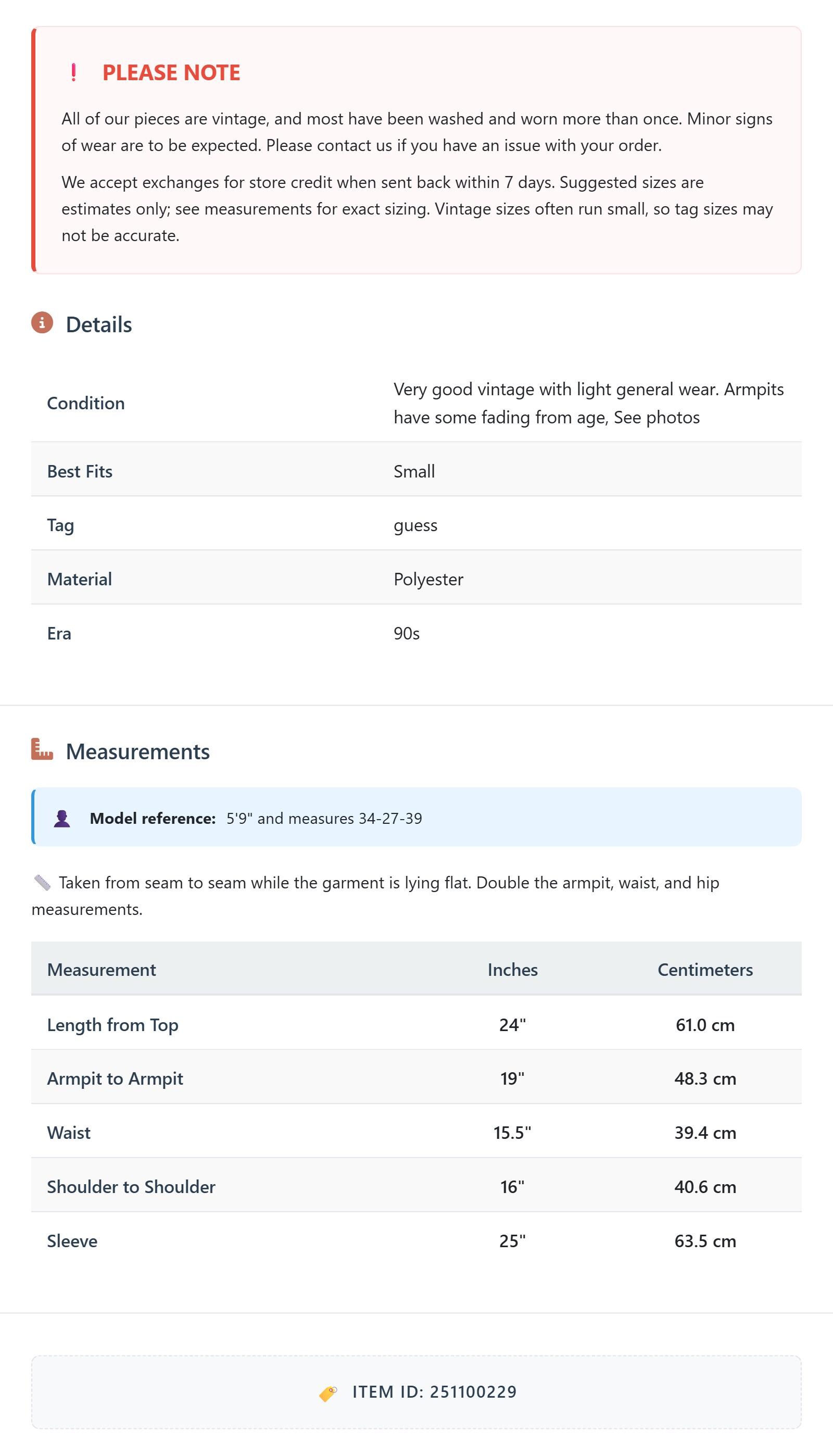 Condition: Very good vintage with light general wear. Armpits have some fading from age, See photos