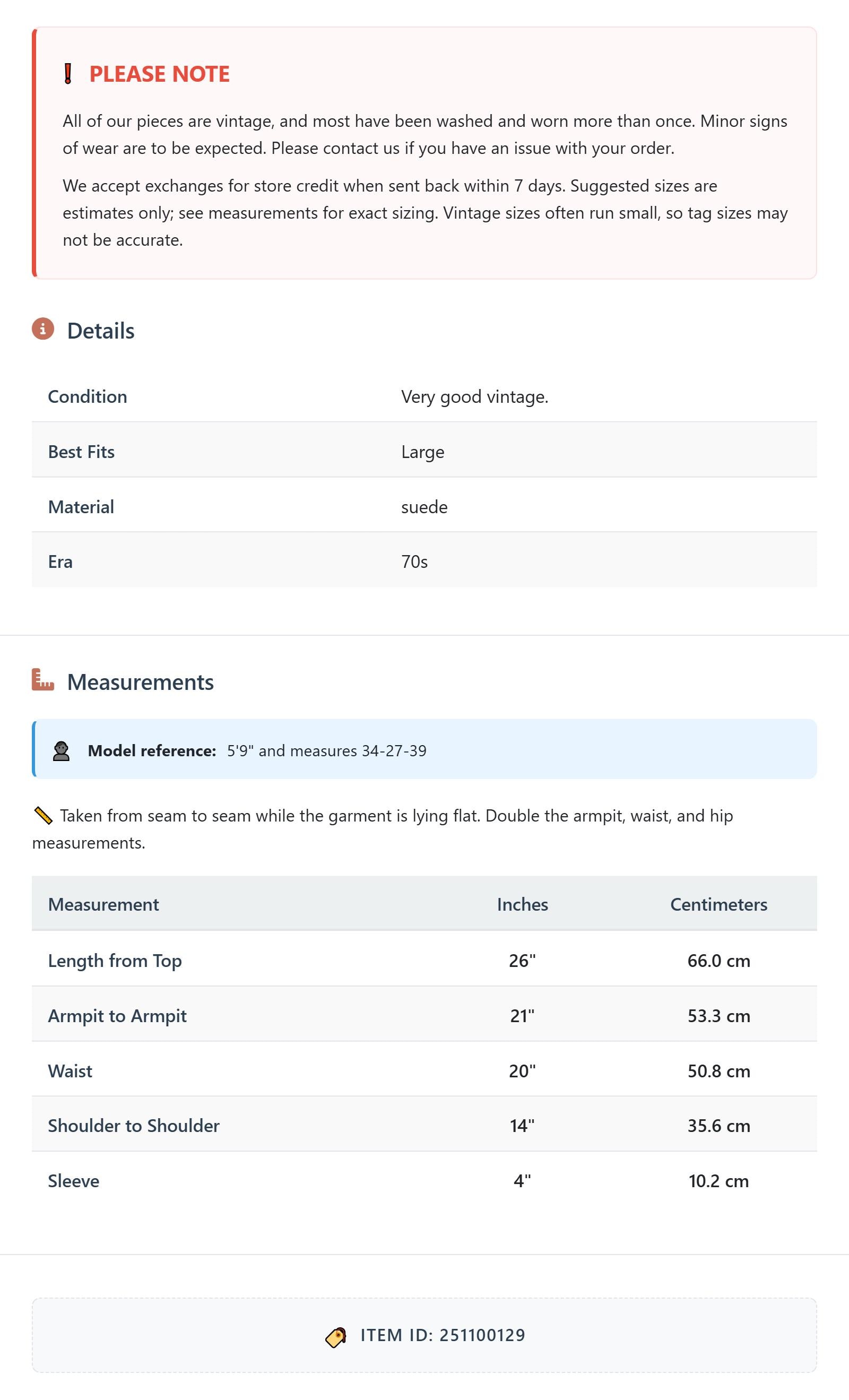 Suggested sizes are estimates only; see measurements for exact sizing. Vintage sizes often run small, so tag sizes may not be accurate.