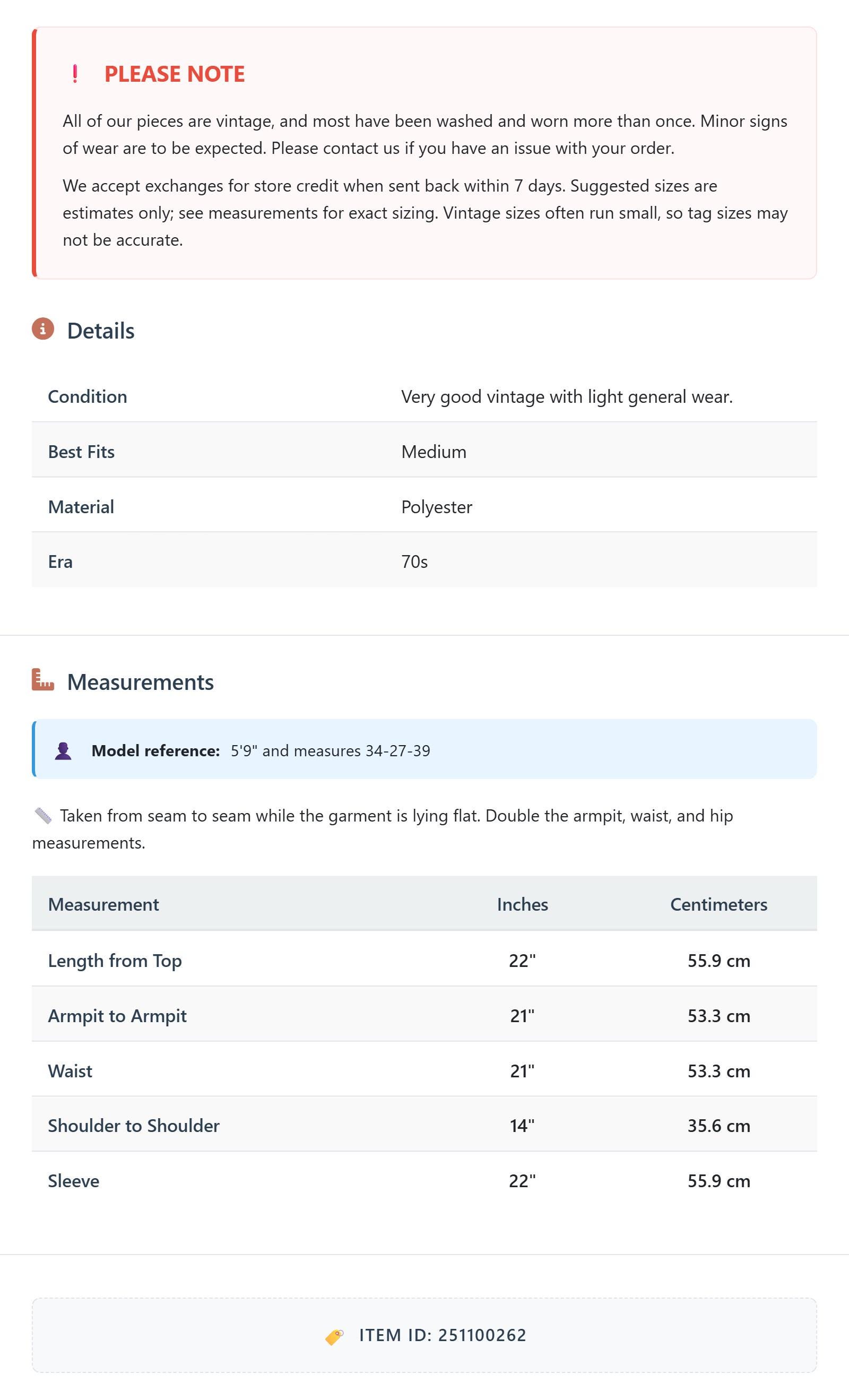 Suggested sizes are estimates only; see measurements for exact sizing. Vintage sizes often run small, so tag sizes may not be accurate.
