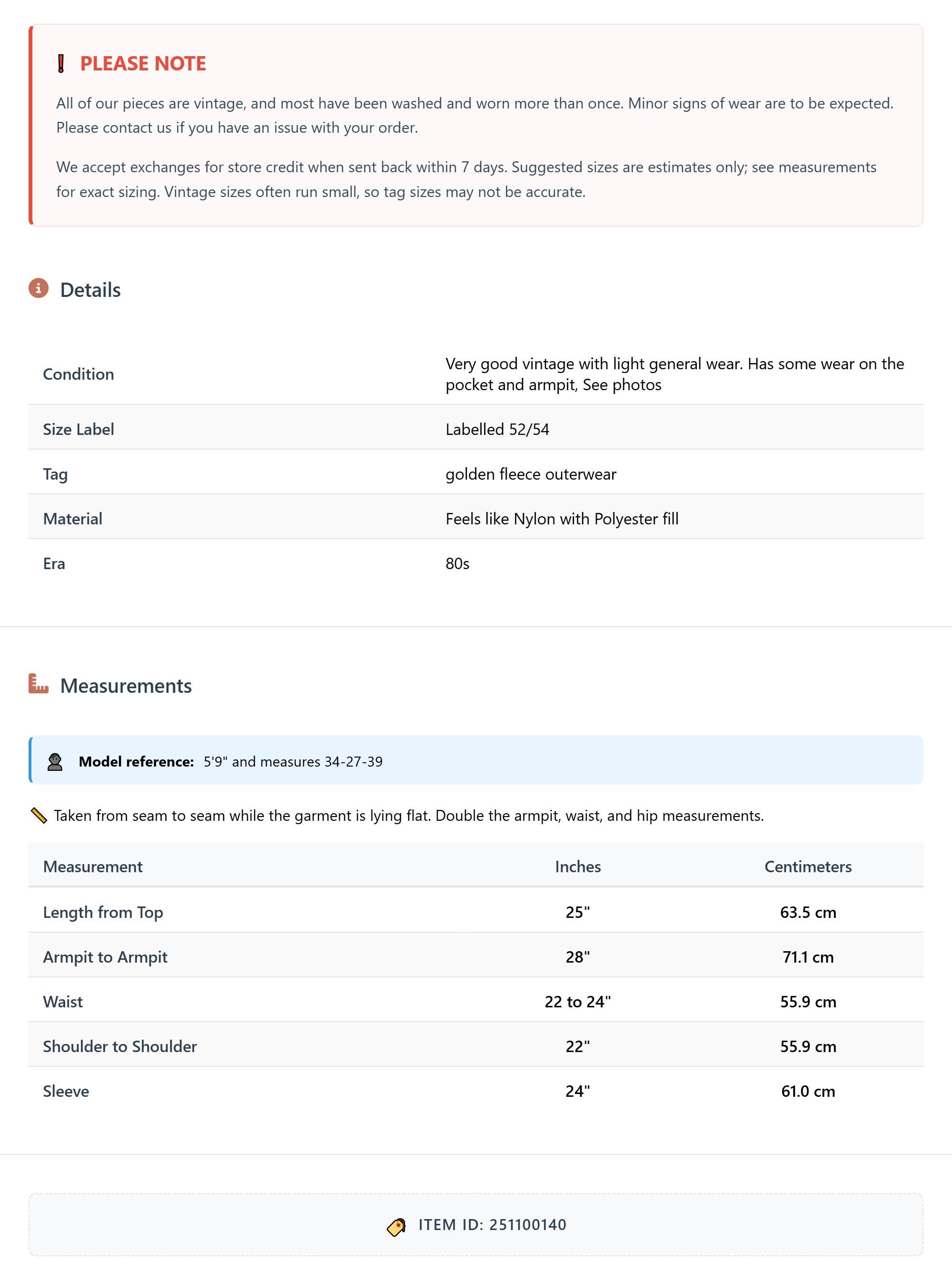 Suggested sizes are estimates only; see measurements for exact sizing. Vintage sizes often run small, so tag sizes may not be accurate.
