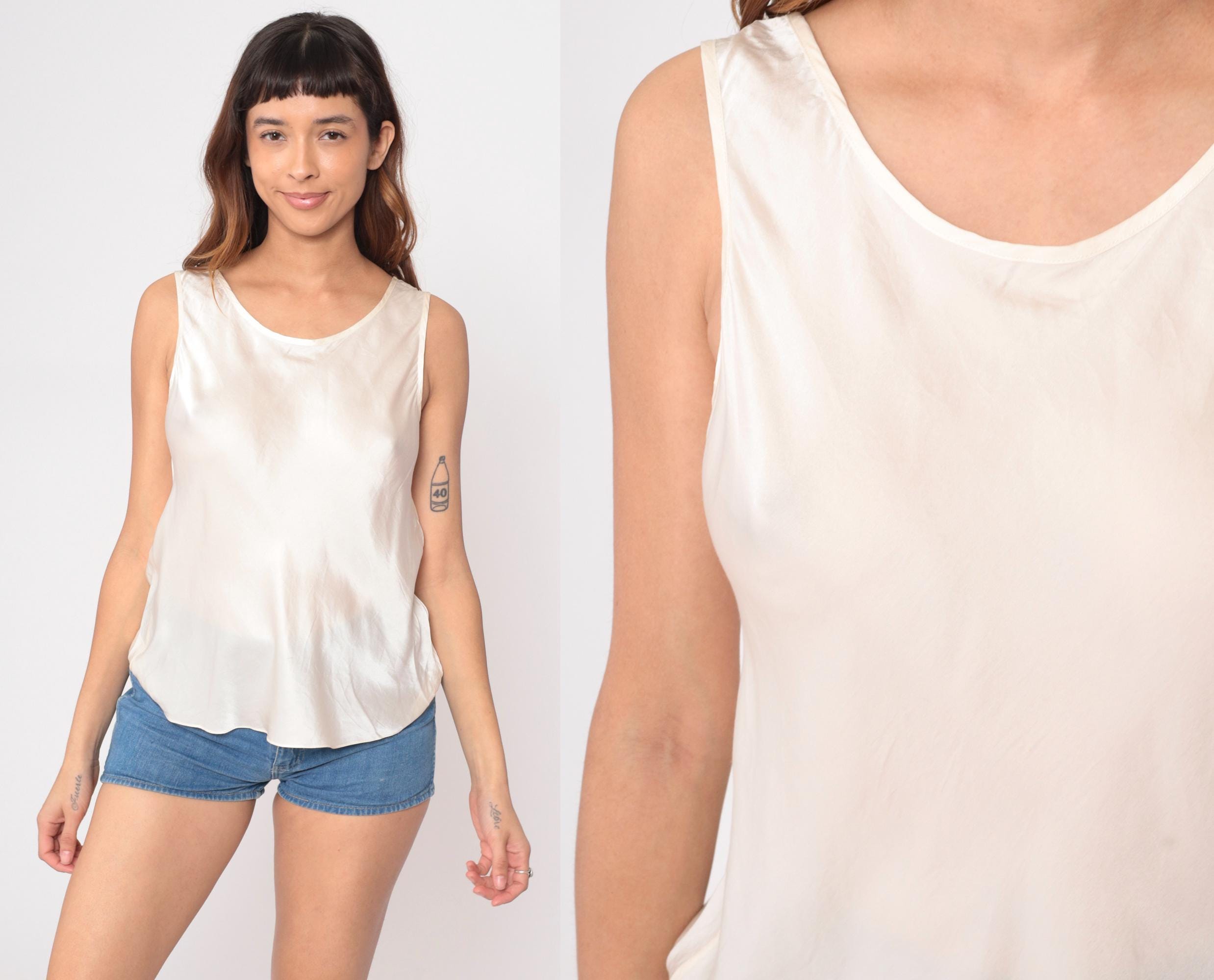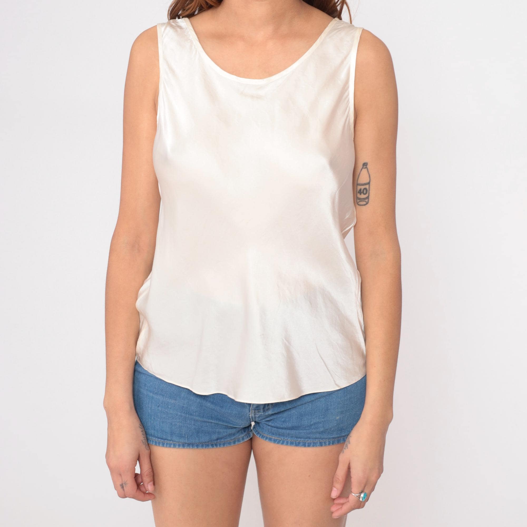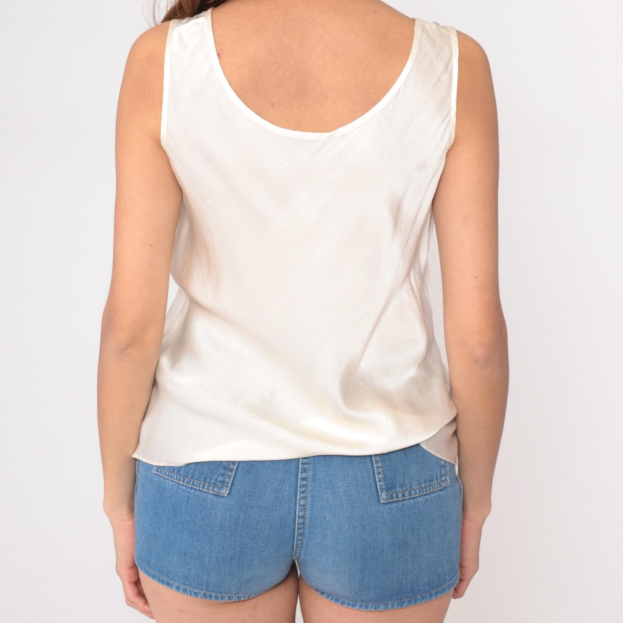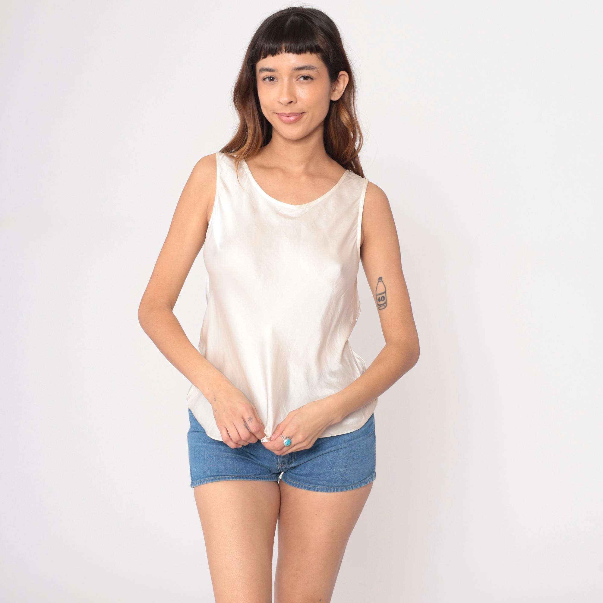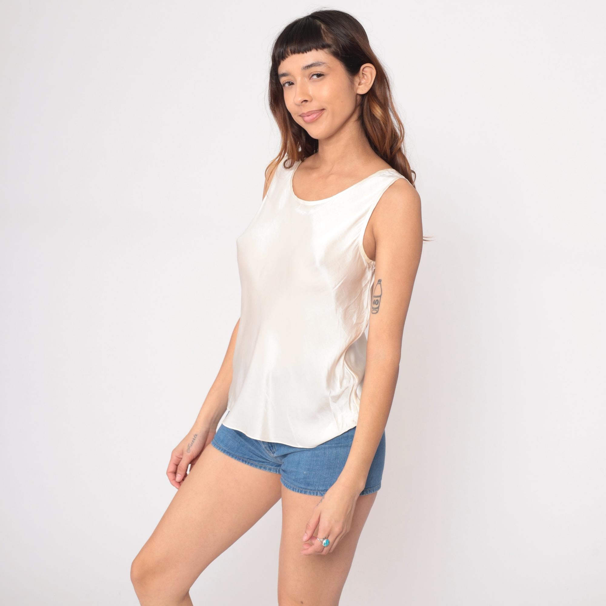 90s cream silk shell top from Valerie Stevens with scoop neckline and sleeveless construction. Simple minimalist design with clean lines and no embellishments.