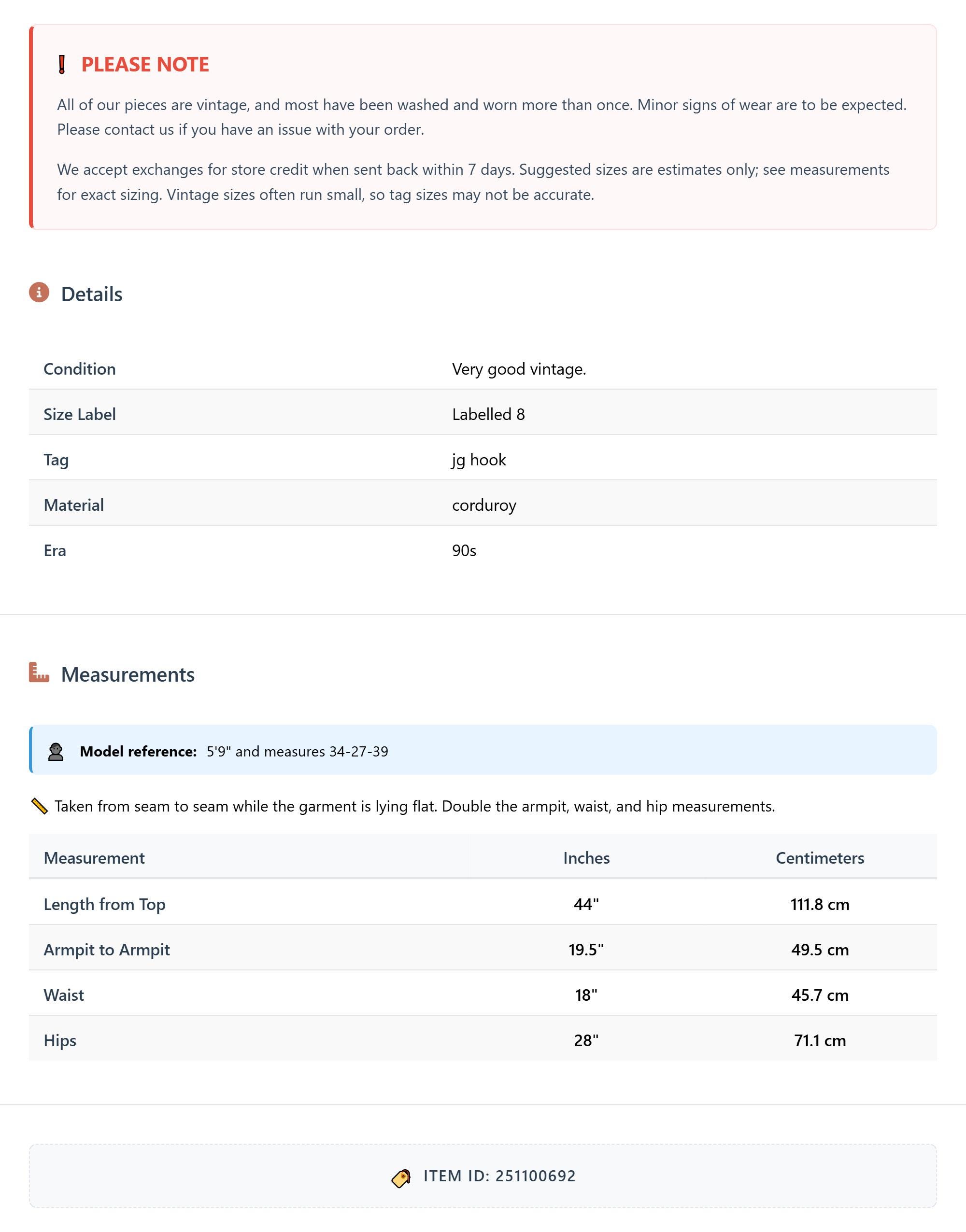 Suggested sizes are estimates only; see measurements for exact sizing. Vintage sizes often run small, so tag sizes may not be accurate.
