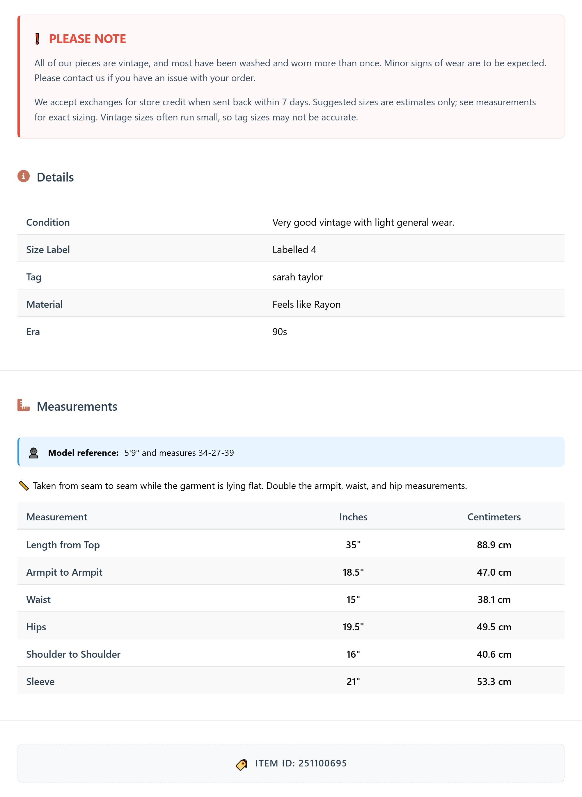 Suggested sizes are estimates only; see measurements for exact sizing. Vintage sizes often run small, so tag sizes may not be accurate.