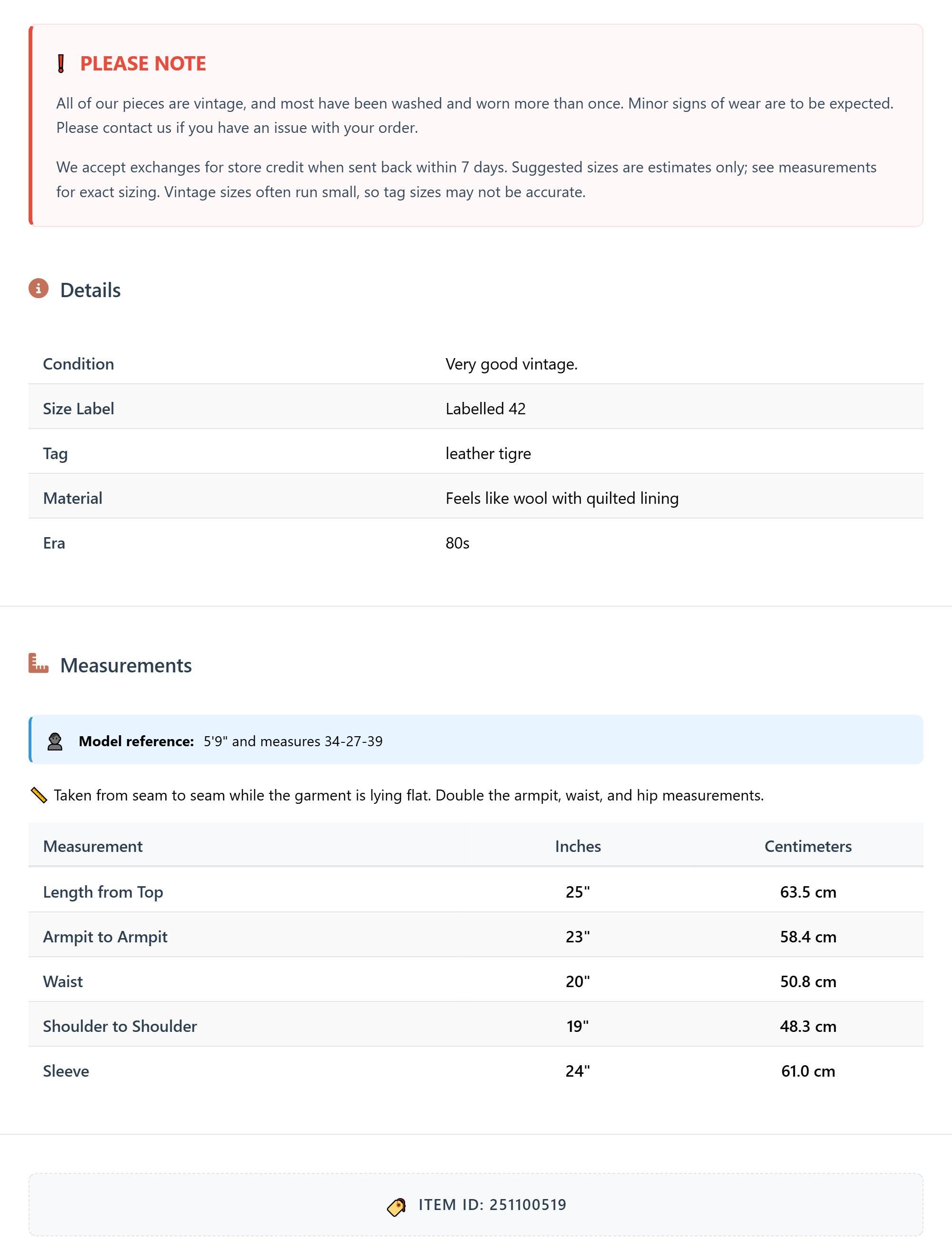 Suggested sizes are estimates only; see measurements for exact sizing. Vintage sizes often run small, so tag sizes may not be accurate.