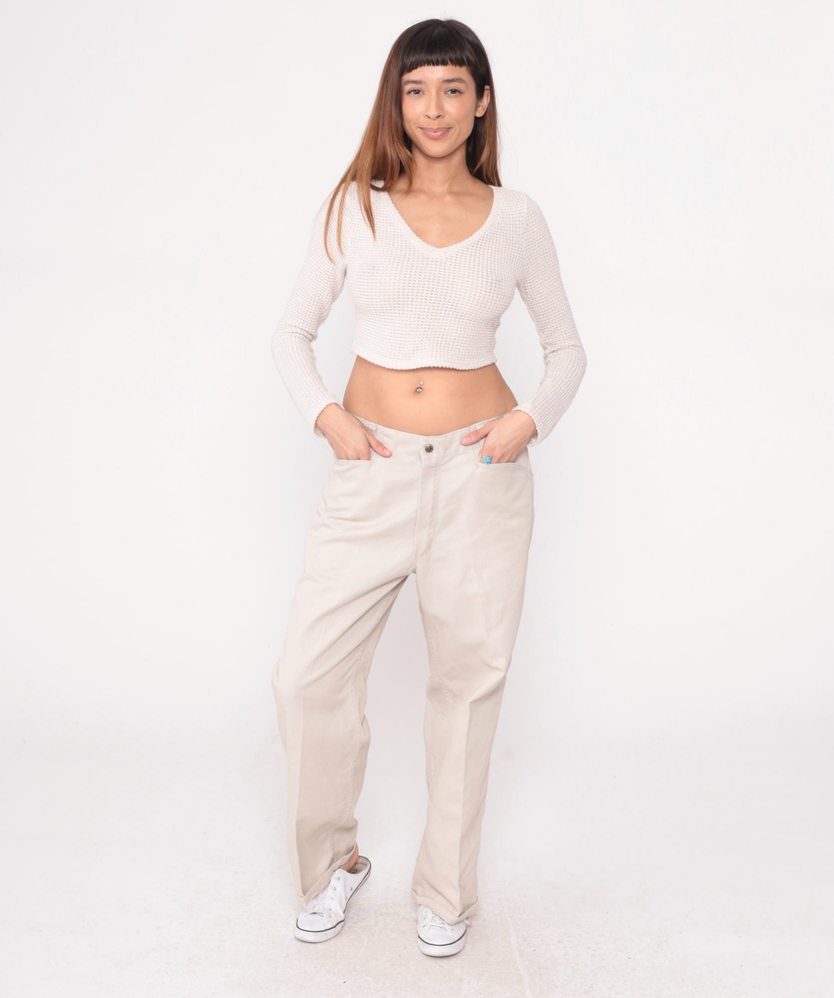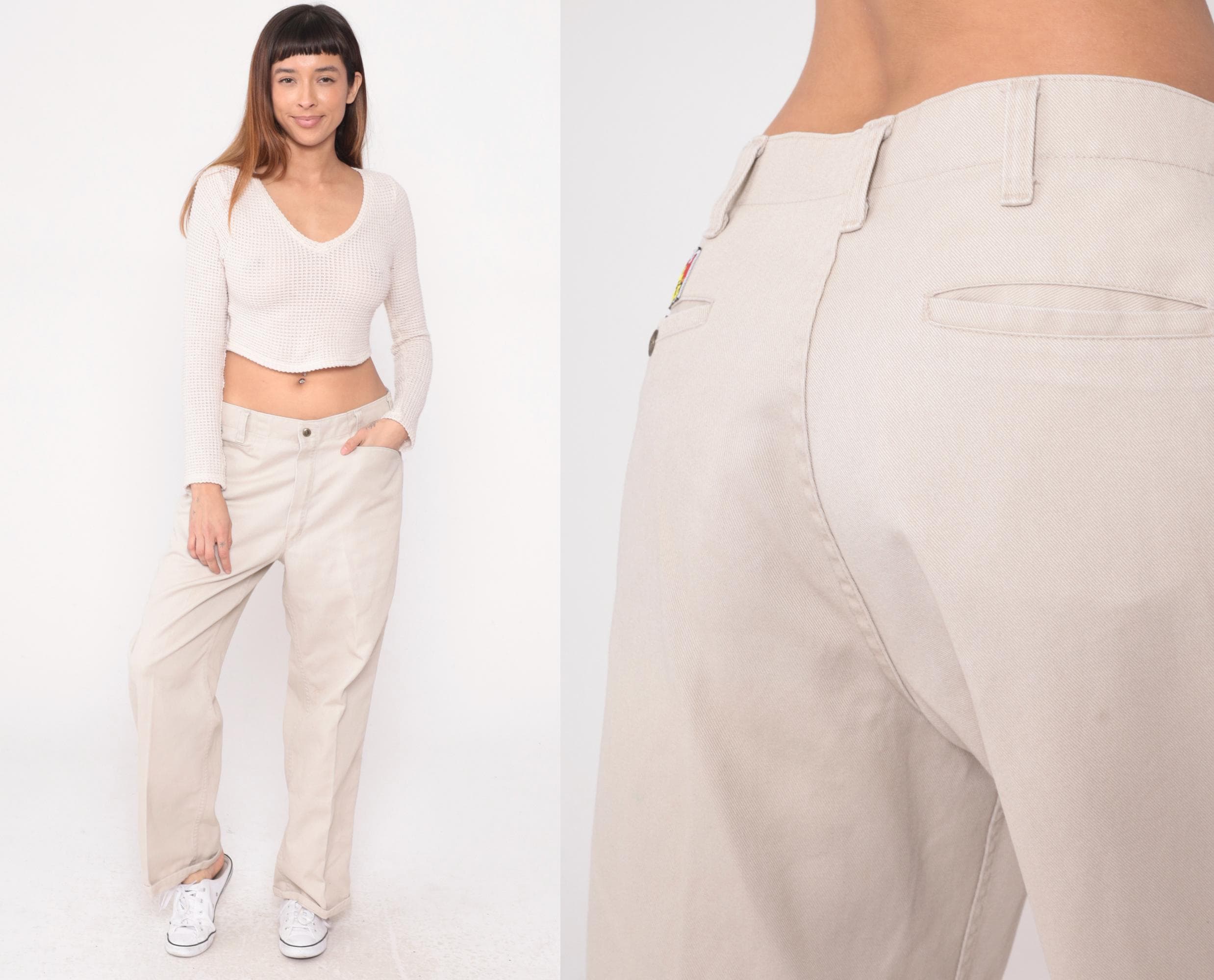 Vintage denim was usually made without any stretch, unlike modern jeans. Check the measurements to ensure proper fit, and remember to give yourself a little wiggle room in the waist and hips, depending on your preferred fit.