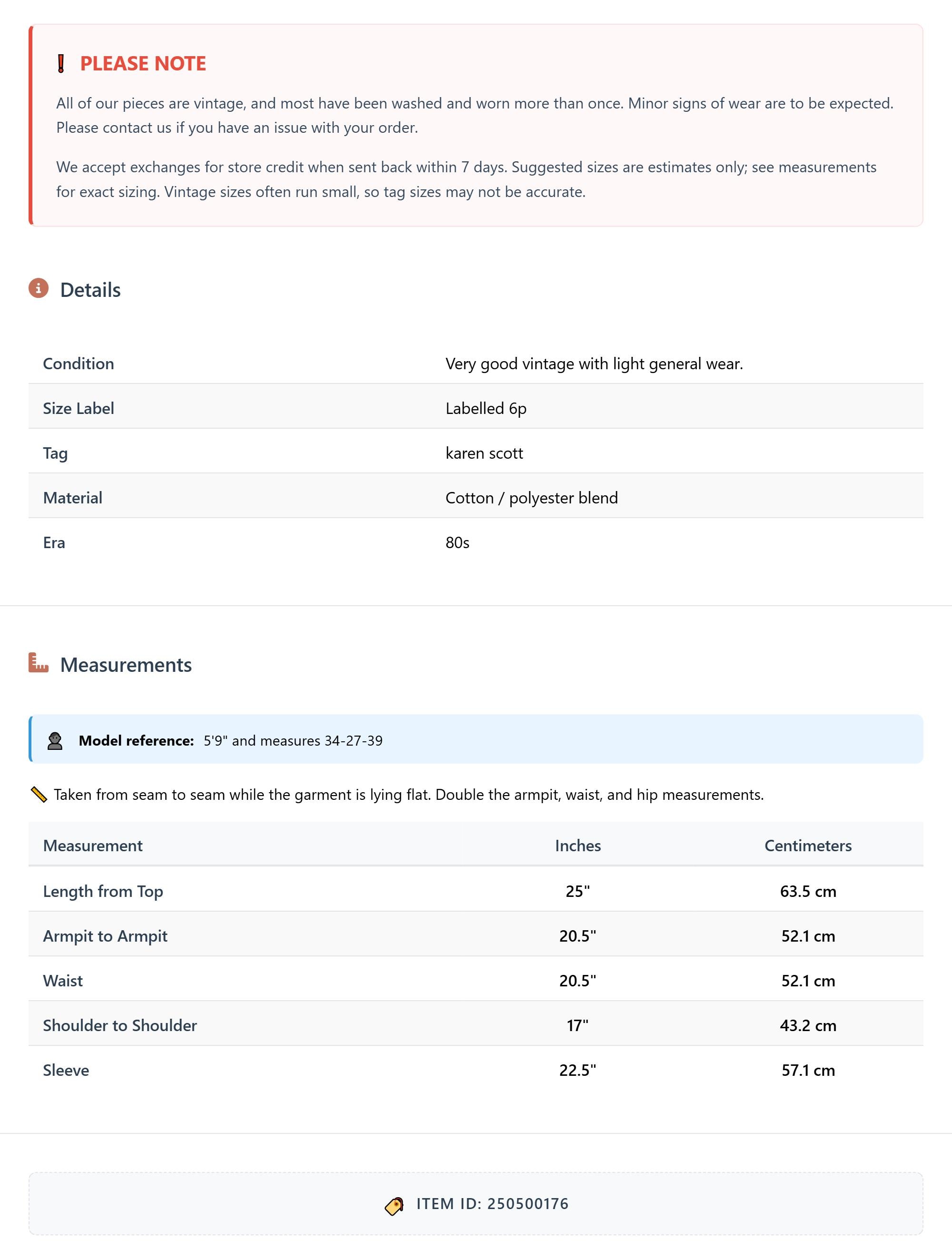 Suggested sizes are estimates only; see measurements for exact sizing. Vintage sizes often run small, so tag sizes may not be accurate.