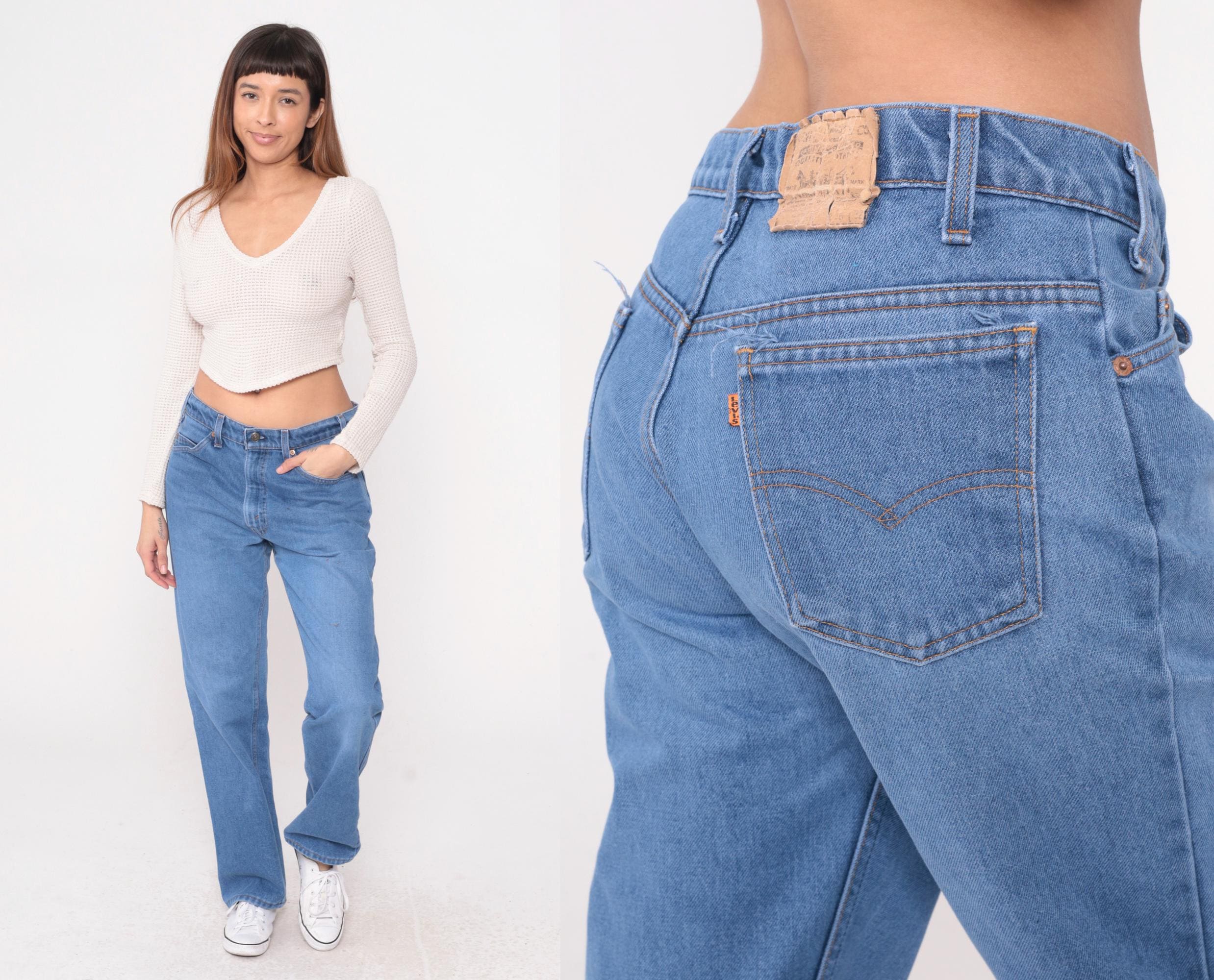 Vintage denim was usually made without any stretch, unlike modern jeans. Check the measurements to ensure proper fit, and remember to give yourself a little wiggle room in the waist and hips, depending on your preferred fit.