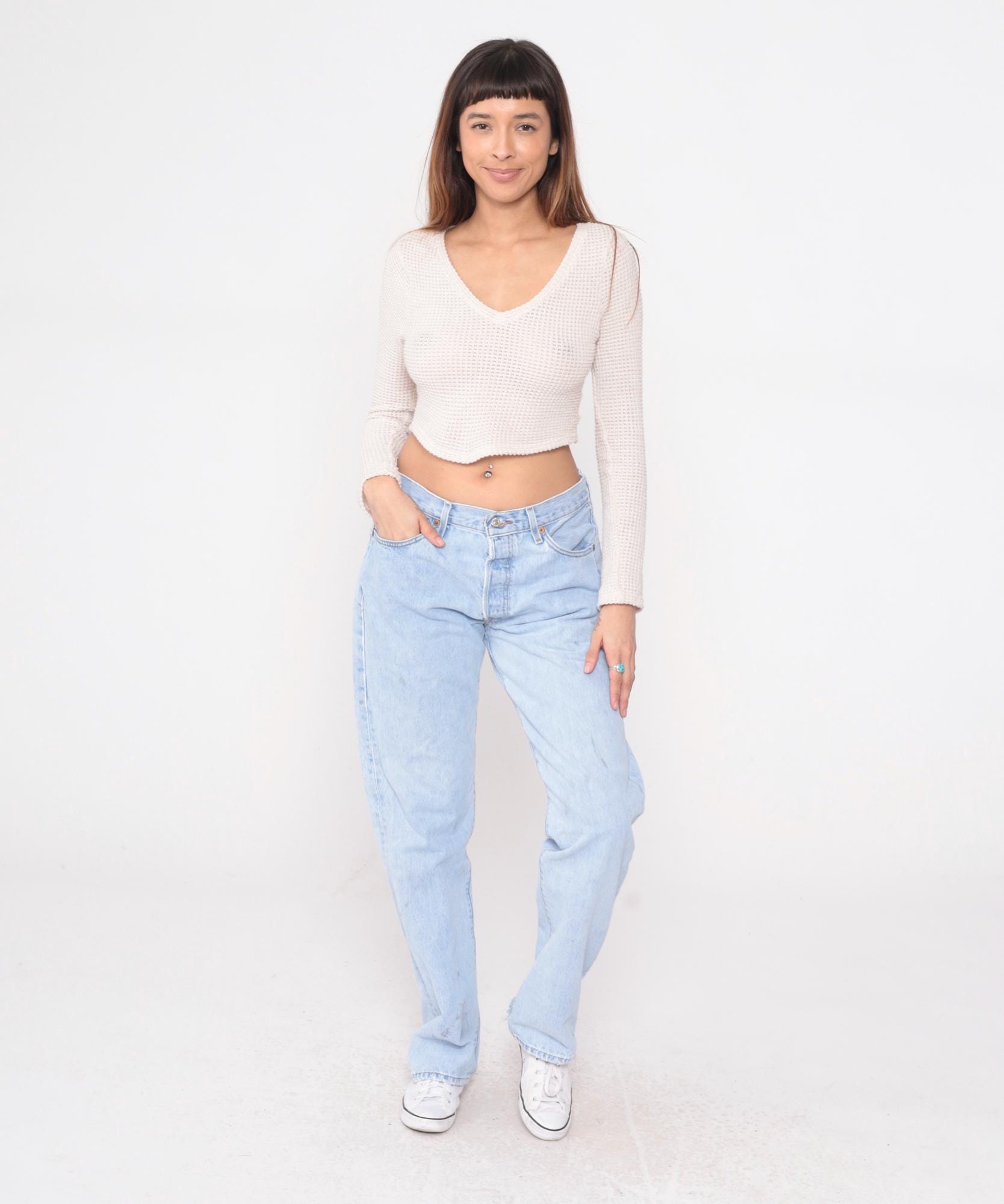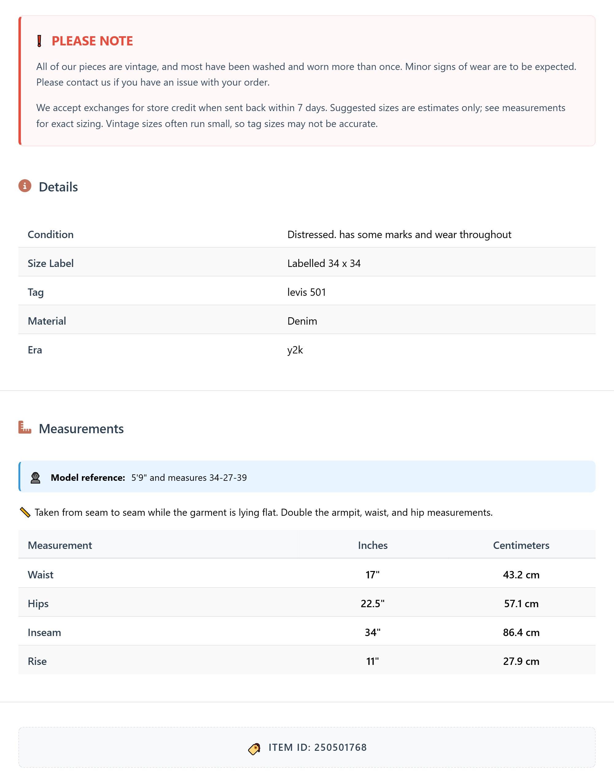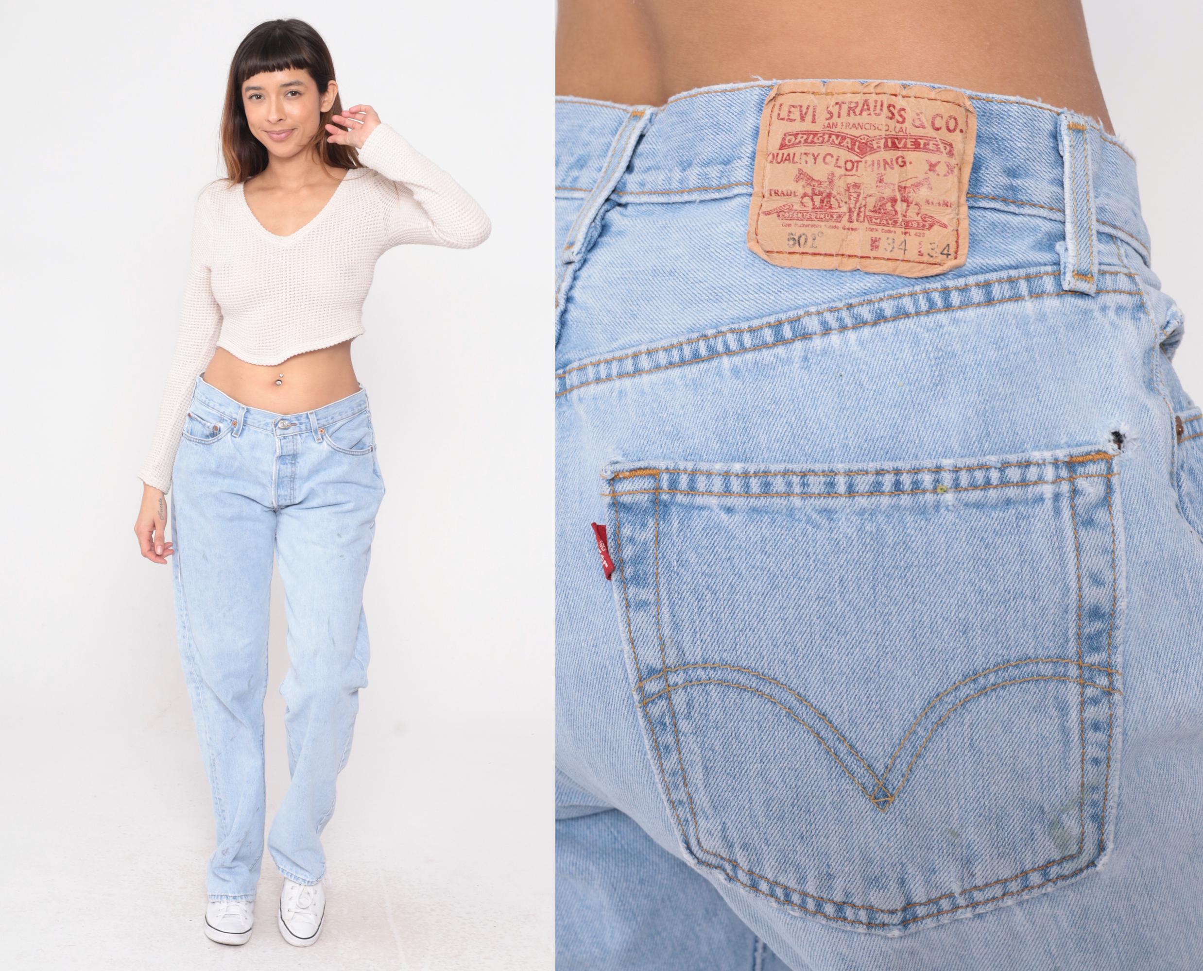 Vintage denim was usually made without any stretch, unlike modern jeans. Check the measurements to ensure proper fit, and remember to give yourself a little wiggle room in the waist and hips, depending on your preferred fit.