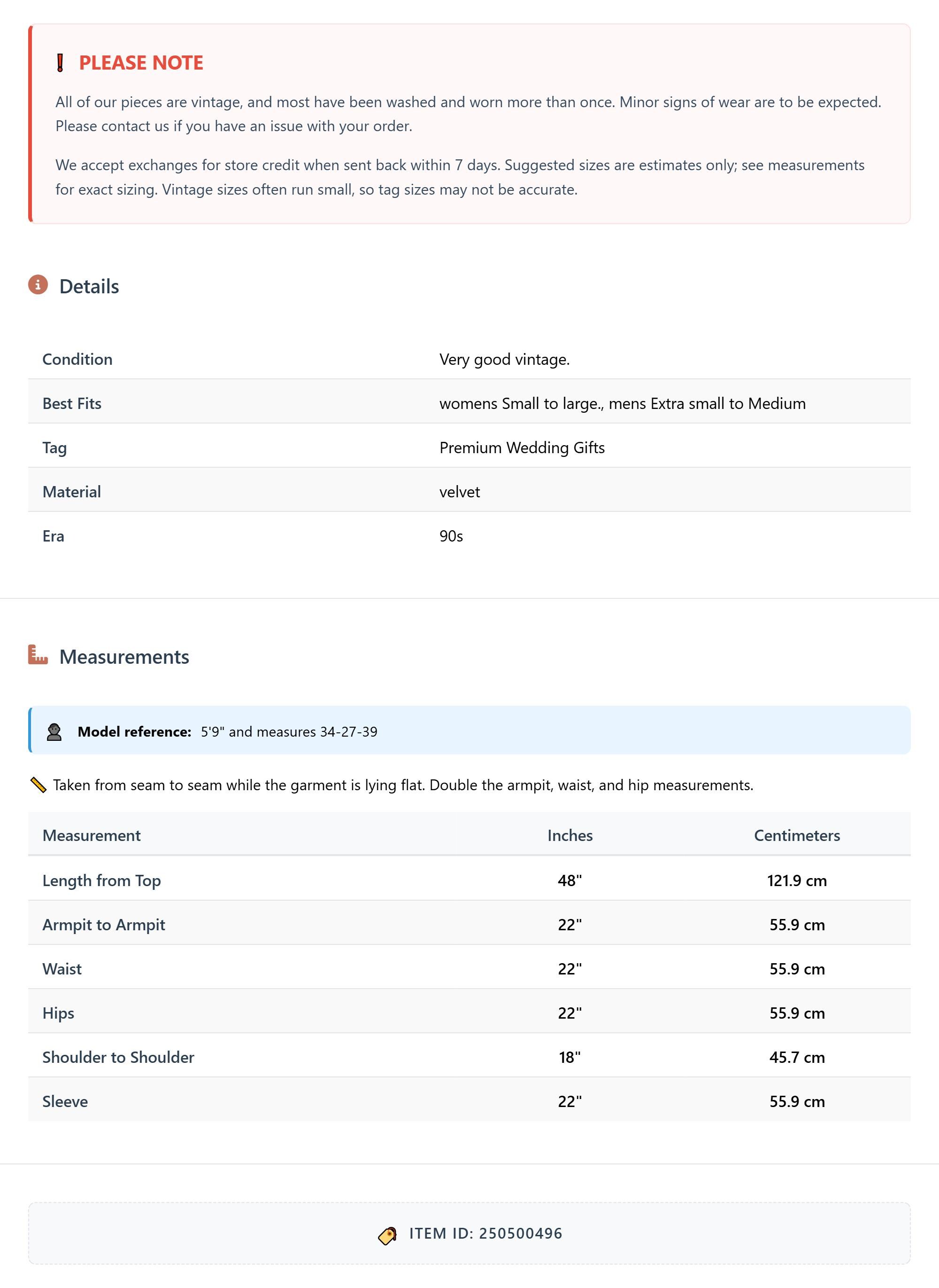 Suggested sizes are estimates only; see measurements for exact sizing. Vintage sizes often run small, so tag sizes may not be accurate.