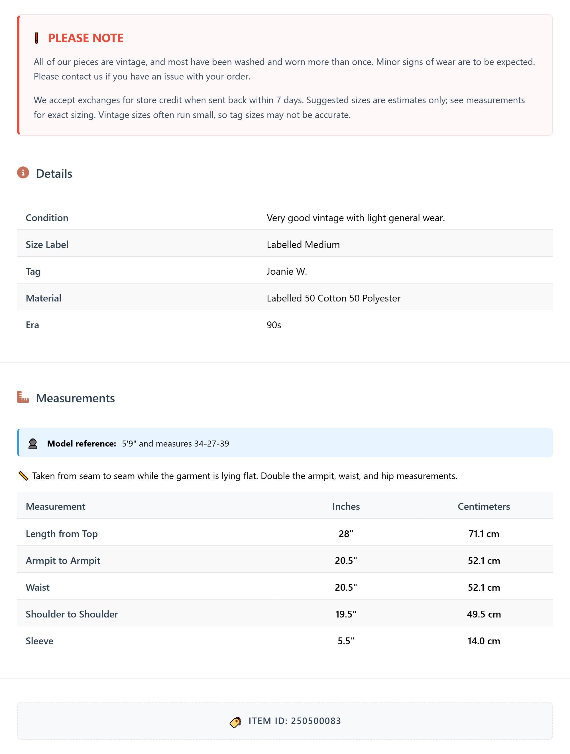 Suggested sizes are estimates only; see measurements for exact sizing. Vintage sizes often run small, so tag sizes may not be accurate.