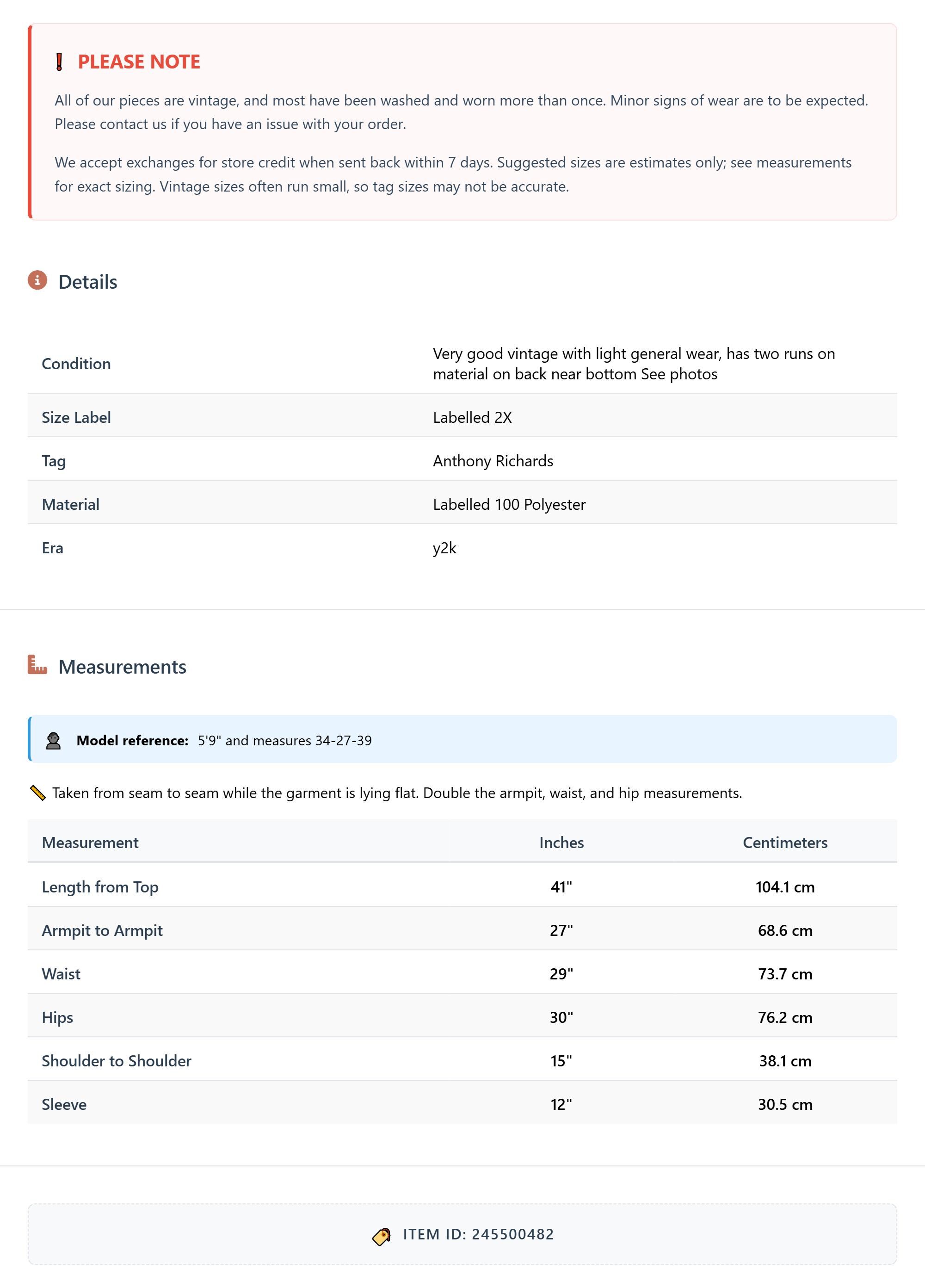 Suggested sizes are estimates only; see measurements for exact sizing. Vintage sizes often run small, so tag sizes may not be accurate.