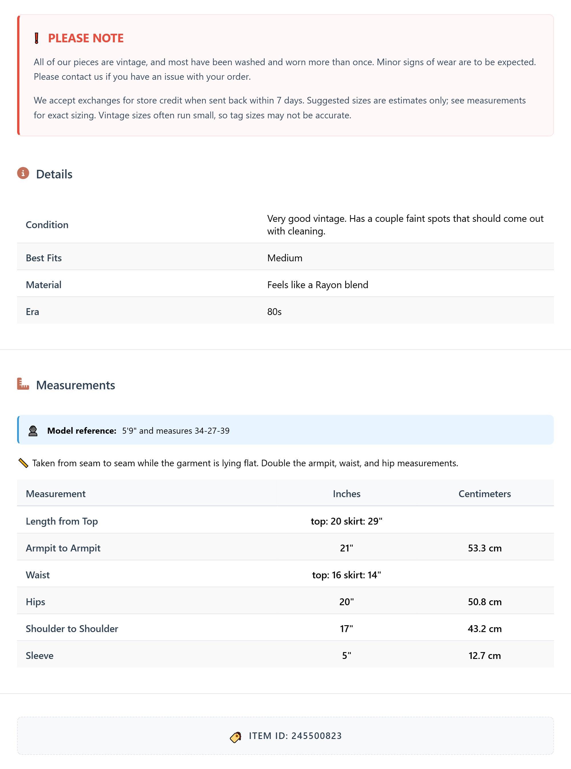 Suggested sizes are estimates only; see measurements for exact sizing. Vintage sizes often run small, so tag sizes may not be accurate.