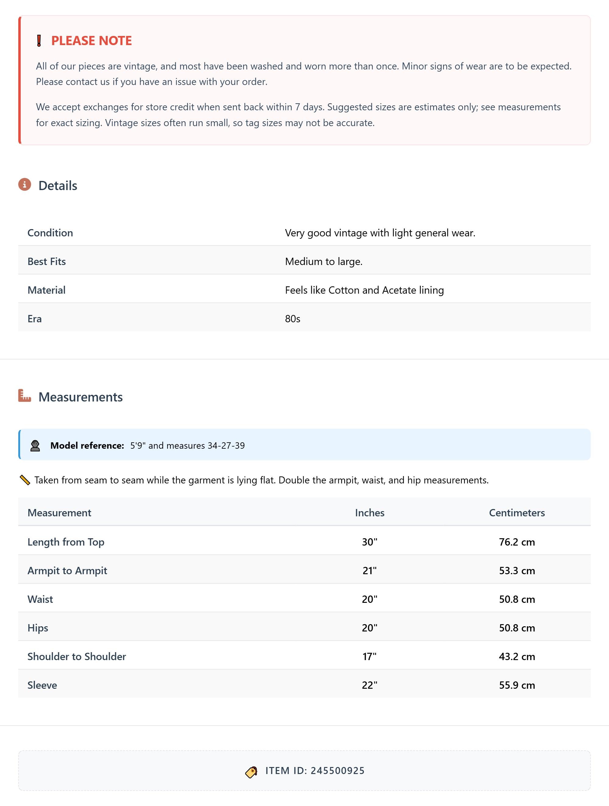 Suggested sizes are estimates only; see measurements for exact sizing. Vintage sizes often run small, so tag sizes may not be accurate.