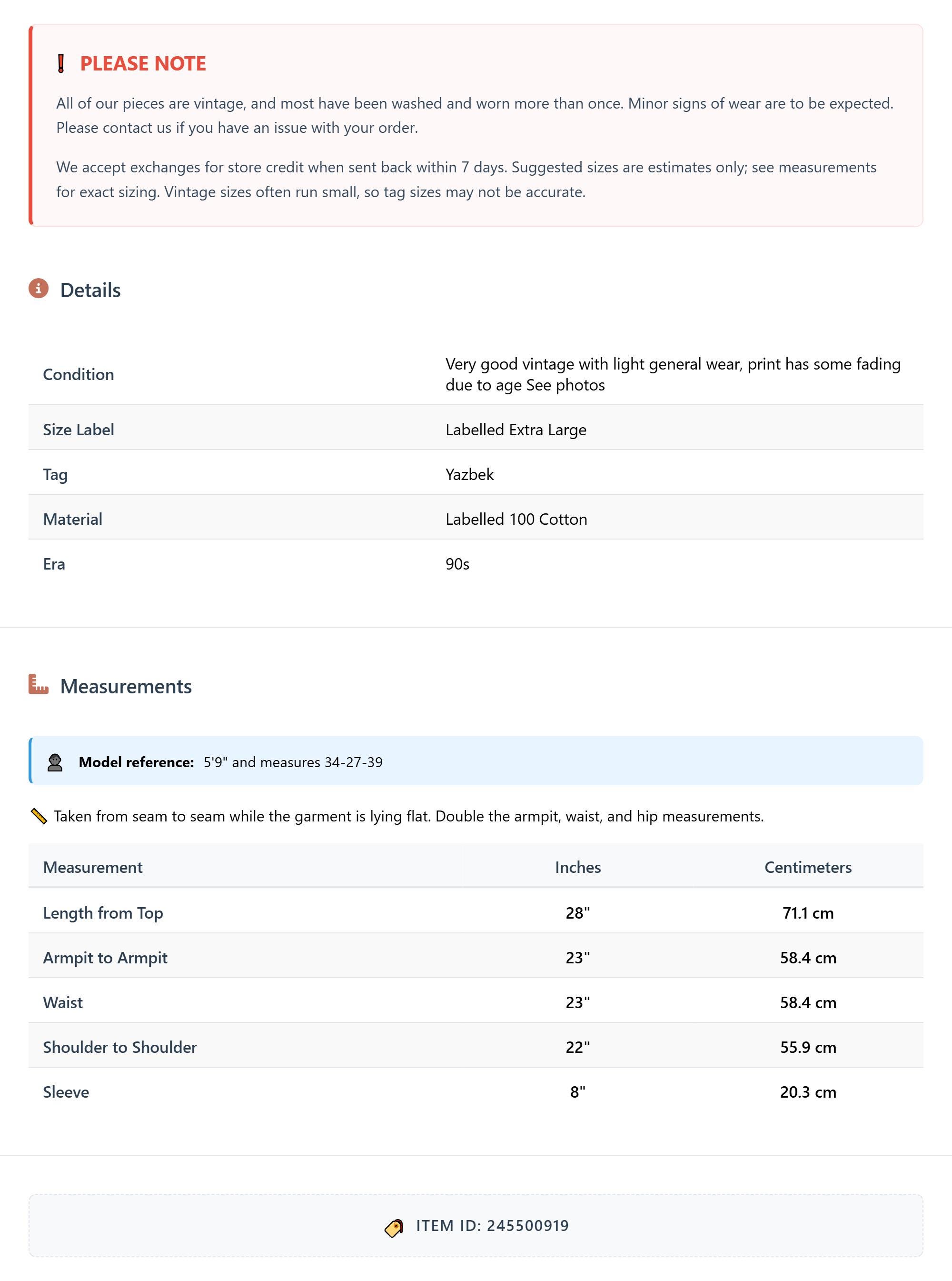 Suggested sizes are estimates only; see measurements for exact sizing. Vintage sizes often run small, so tag sizes may not be accurate.
