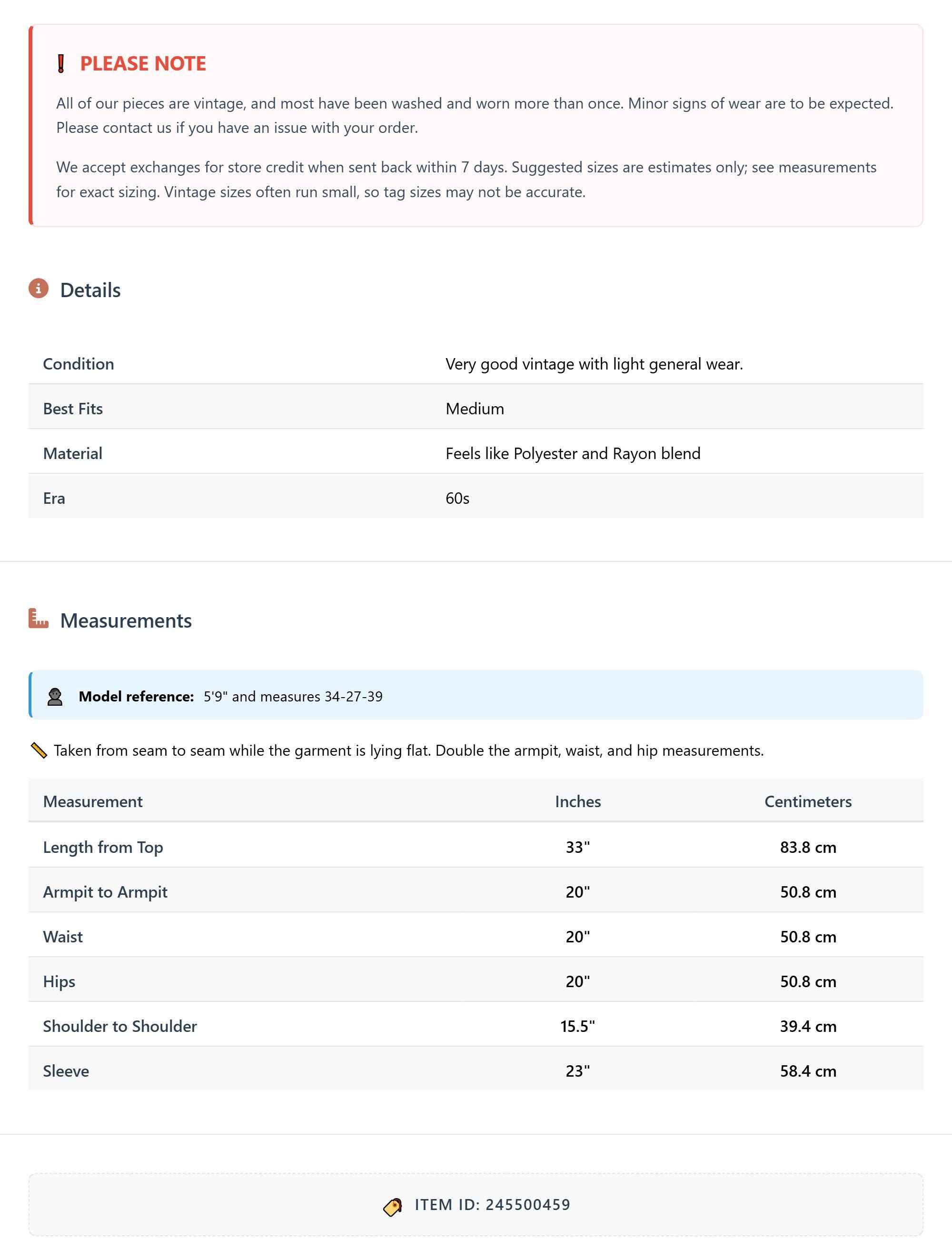 Suggested sizes are estimates only; see measurements for exact sizing. Vintage sizes often run small, so tag sizes may not be accurate.