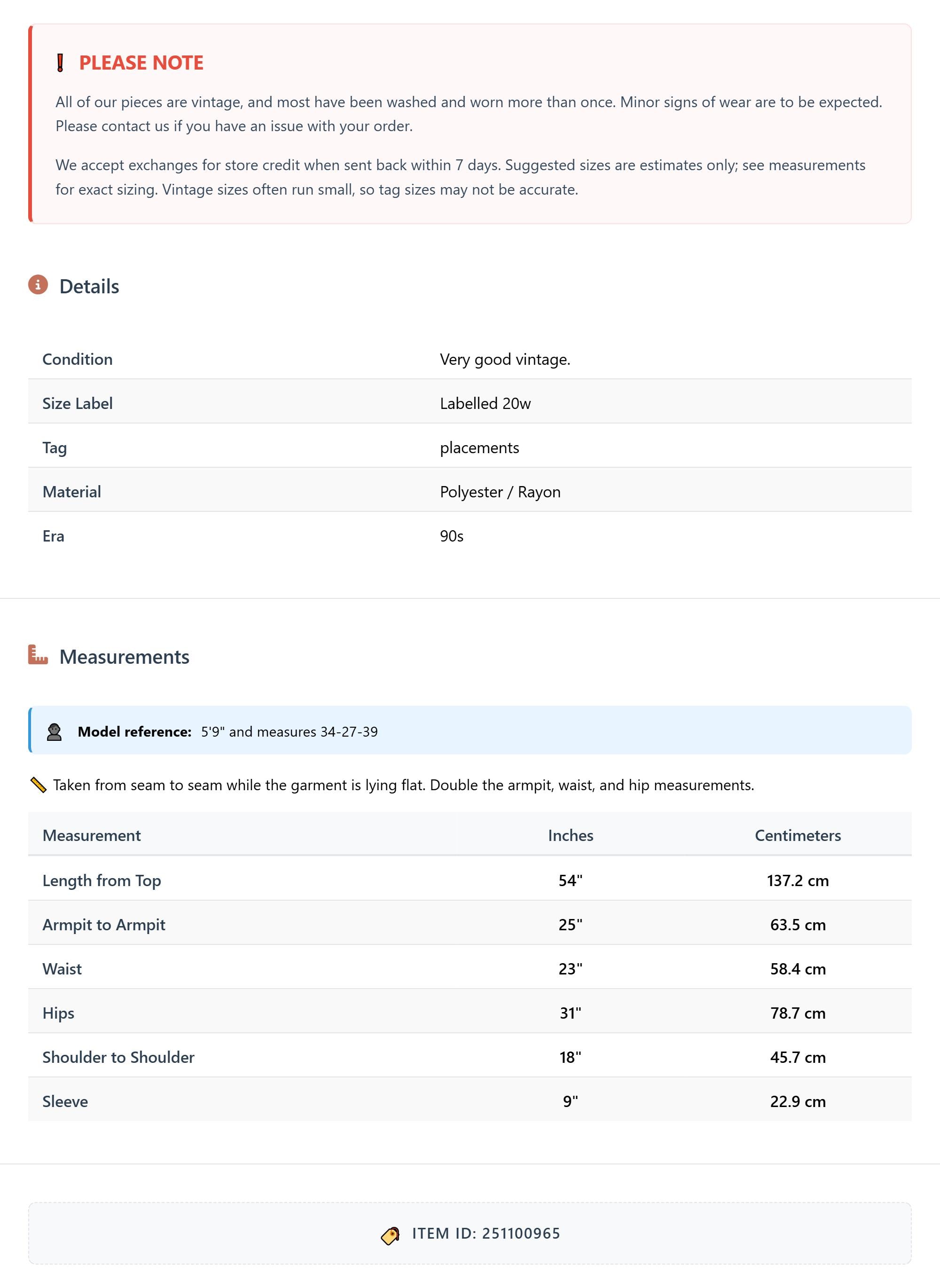 Suggested sizes are estimates only; see measurements for exact sizing. Vintage sizes often run small, so tag sizes may not be accurate.