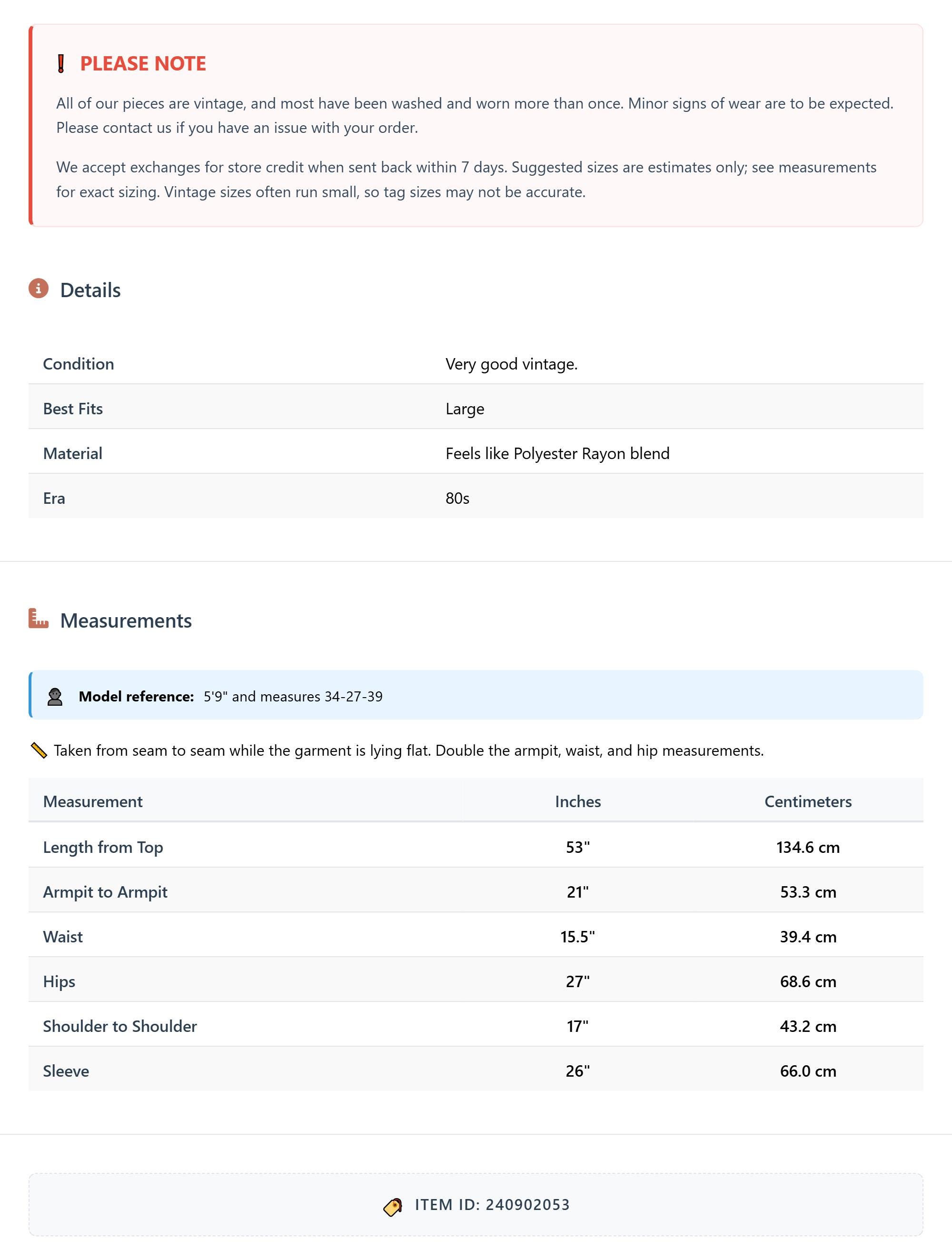 Suggested sizes are estimates only; see measurements for exact sizing. Vintage sizes often run small, so tag sizes may not be accurate.