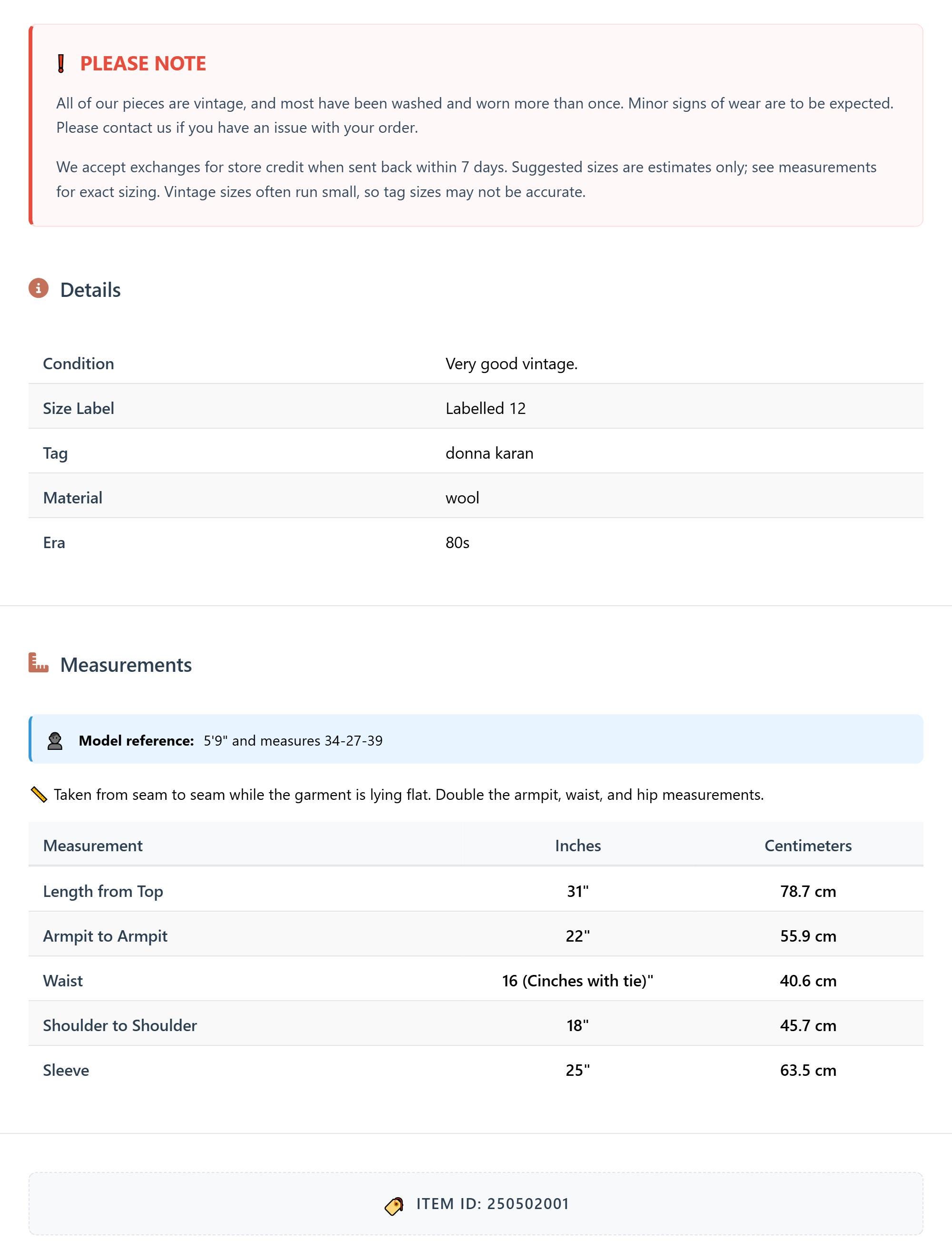Suggested sizes are estimates only; see measurements for exact sizing. Vintage sizes often run small, so tag sizes may not be accurate.