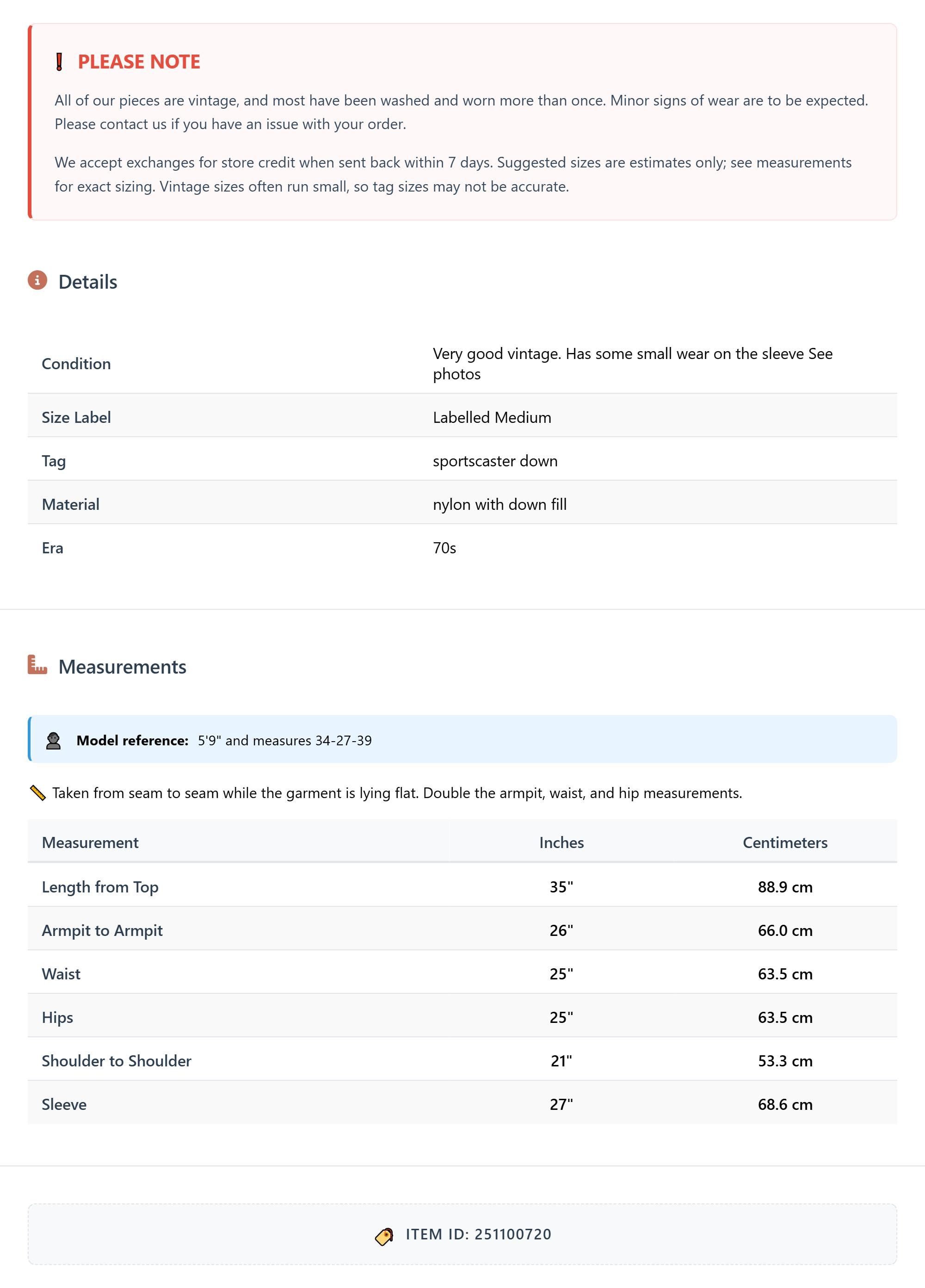 Suggested sizes are estimates only; see measurements for exact sizing. Vintage sizes often run small, so tag sizes may not be accurate.