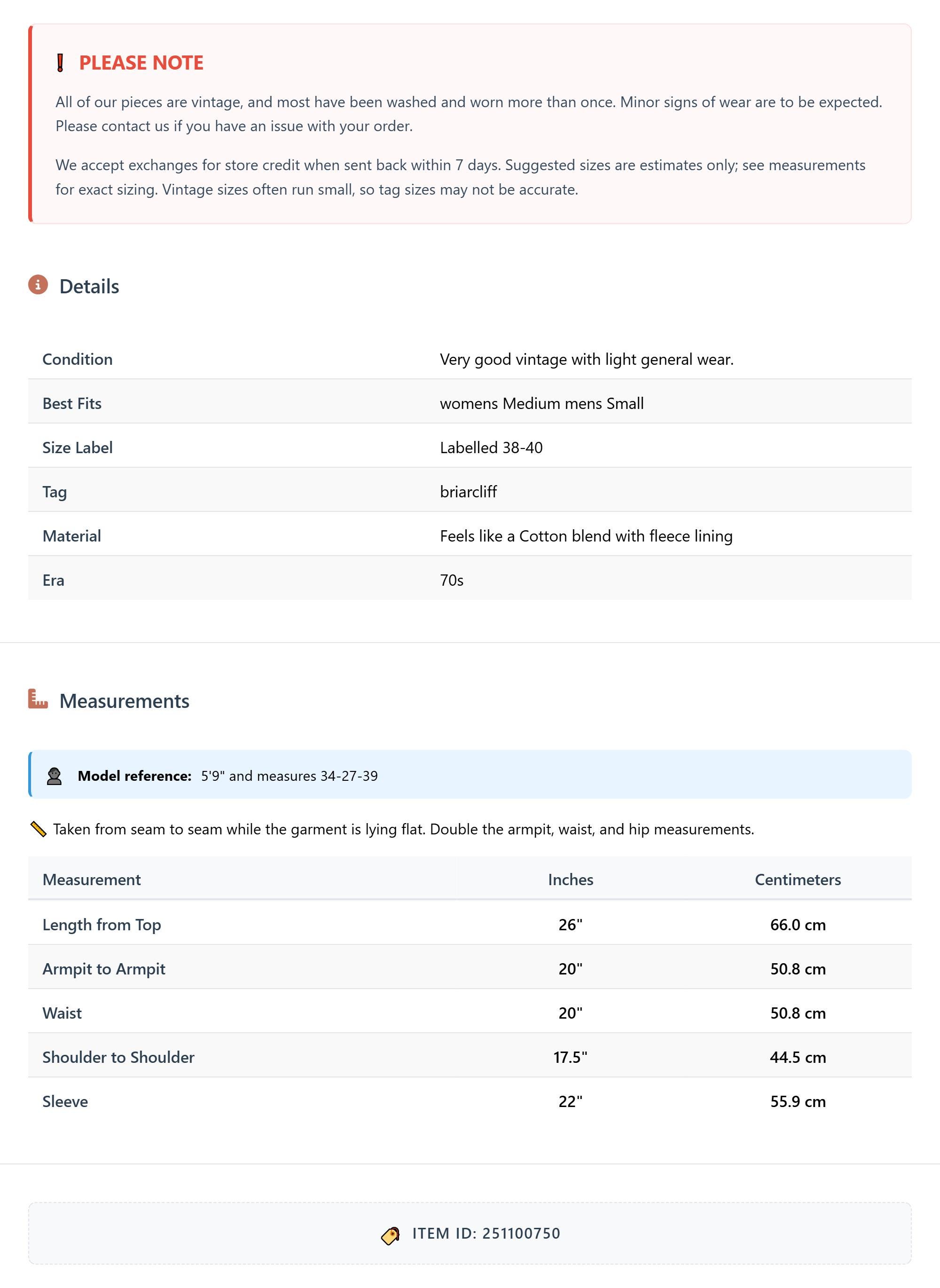 Suggested sizes are estimates only; see measurements for exact sizing. Vintage sizes often run small, so tag sizes may not be accurate.
