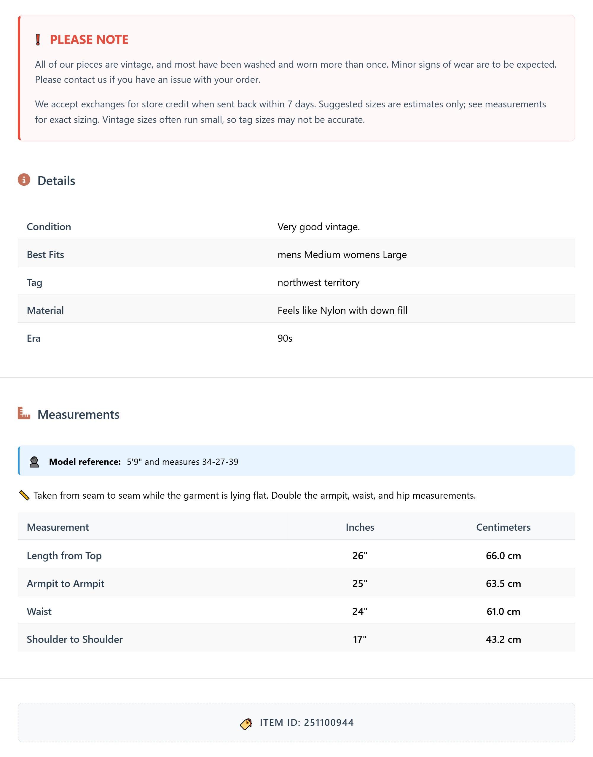 Suggested sizes are estimates only; see measurements for exact sizing. Vintage sizes often run small, so tag sizes may not be accurate.
