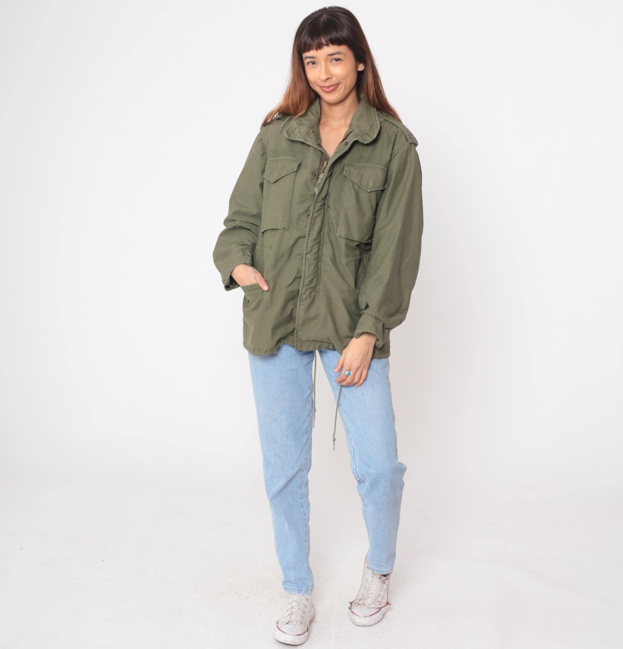Vintage denim was usually made without any stretch, unlike modern jeans. Check the measurements to ensure proper fit, and remember to give yourself a little wiggle room in the waist and hips, depending on your preferred fit.