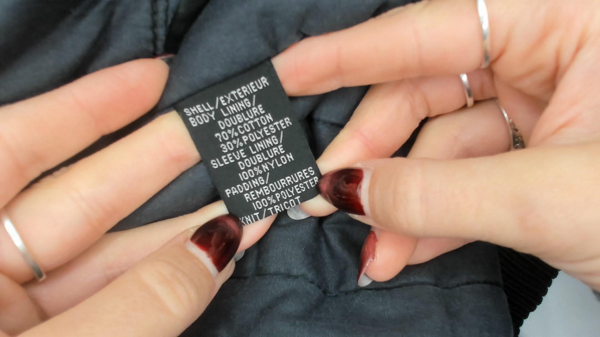 Material: Labelled shell body 70 Cotton 30 Polyester sleeve lining 100 Nylon padding 100 Polyester
