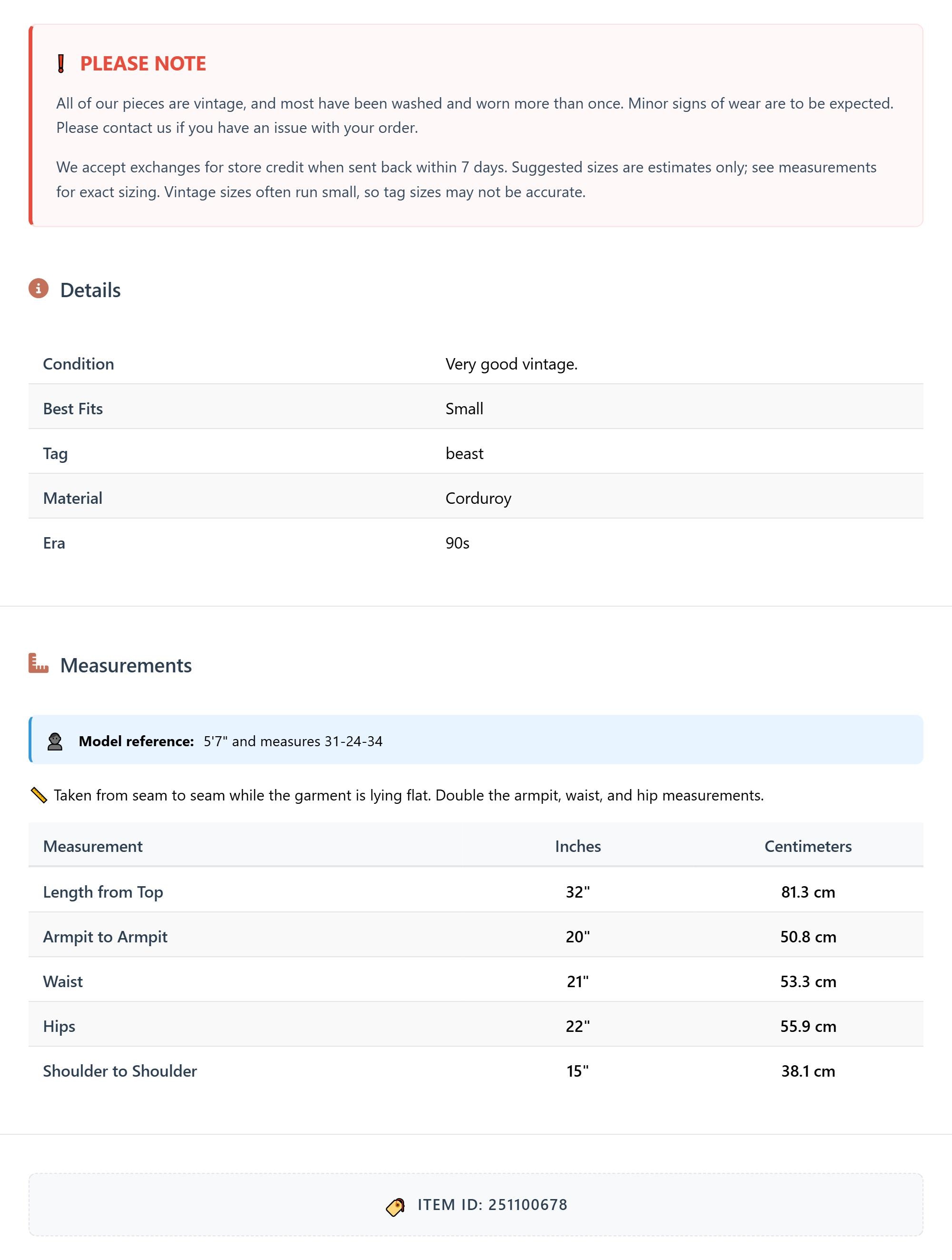 Suggested sizes are estimates only; see measurements for exact sizing. Vintage sizes often run small, so tag sizes may not be accurate.