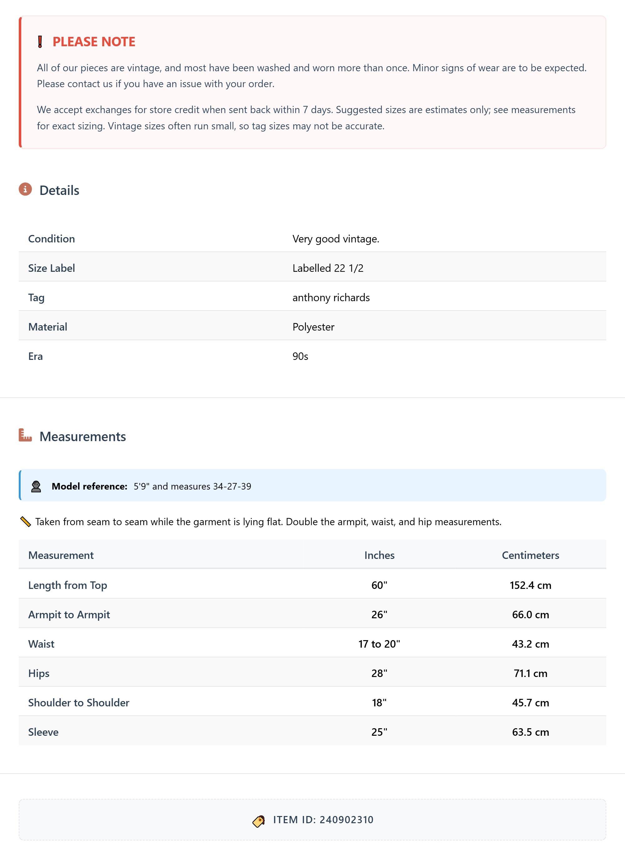Suggested sizes are estimates only; see measurements for exact sizing. Vintage sizes often run small, so tag sizes may not be accurate.